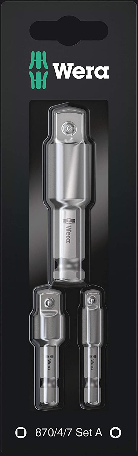 Ez a Wera adapter készlet kiválóan alkalmas arra, hogy bármilyen ház körüli, garázsban vagy műhelyben végzett feladatot könnyedén megoldjon. A készlet négyzet alakú meghajtású, így tökéletes választás azok számára, akik universális megoldást keresnek különböző csavarkulcs illesztésekhez.
