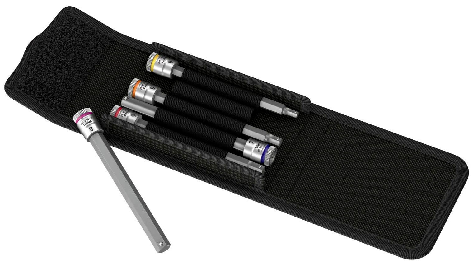 Ismerje meg a Wera 8740 A HF 1 Zyklop professzionális dugókulcs készletet, amit kifejezetten a precíziós és kényelmes munkához terveztek. Ez a készlet öt darab különböző méretű dugókulcs foglalatból áll, mindegyik 1/4" négyzetmeghajtással, amely ideális a hatlapfejű csavarokhoz.