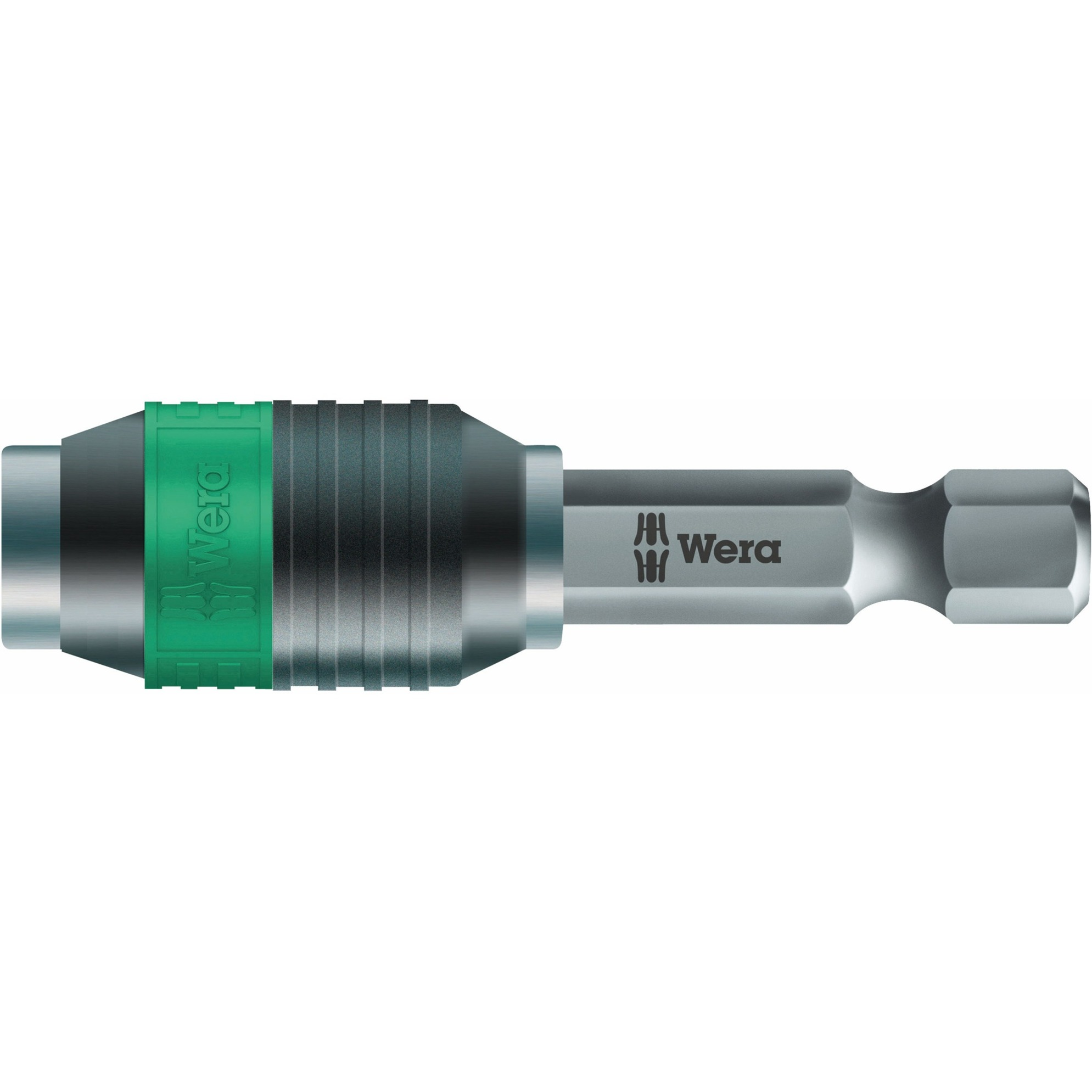 A Wera 889/4/1 K Rapidaptor univerzális tartója a DIN ISO 1173-C 6.3 és E 6.3 (ISO 1173) szabványoknak megfelelő 1/4"-os külső hatlapú meghajtó bitekhez alkalmas.