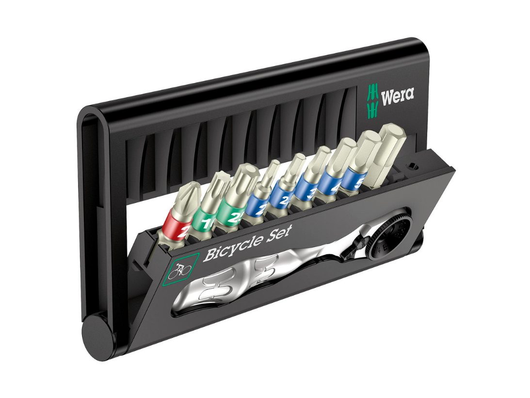 Rengeteg kerékpáros szerszám a legkisebb helyen. A 9 rozsdamentes acélból készült bit hajtás és méret szerinti rendezése lehetővé teszi a megfelelő szerszám gyors elérését. Wera Zyklop MIni 1 bites racsnival, kovácsolt, tömör acélból készült, cseppkovácsolt kivitelben. A 60 fogú, finom fogazású mechanizmus kis, 6°-os visszahajlási szöget tesz lehetővé a precíz munkavégzéshez. A fogazott kerék lehetővé teszi a gyors csavarozást szűk helyzetekben, amikor nincs hely a racsni számára. Könnyű balra/jobbra váltás. Ergonomikusan kialakított racsnifej és kar. Take it easy szerszámkeresővel, méret szerinti színkódolással - a szükséges szerszám egyszerű és gyors megtalálása érdekében.