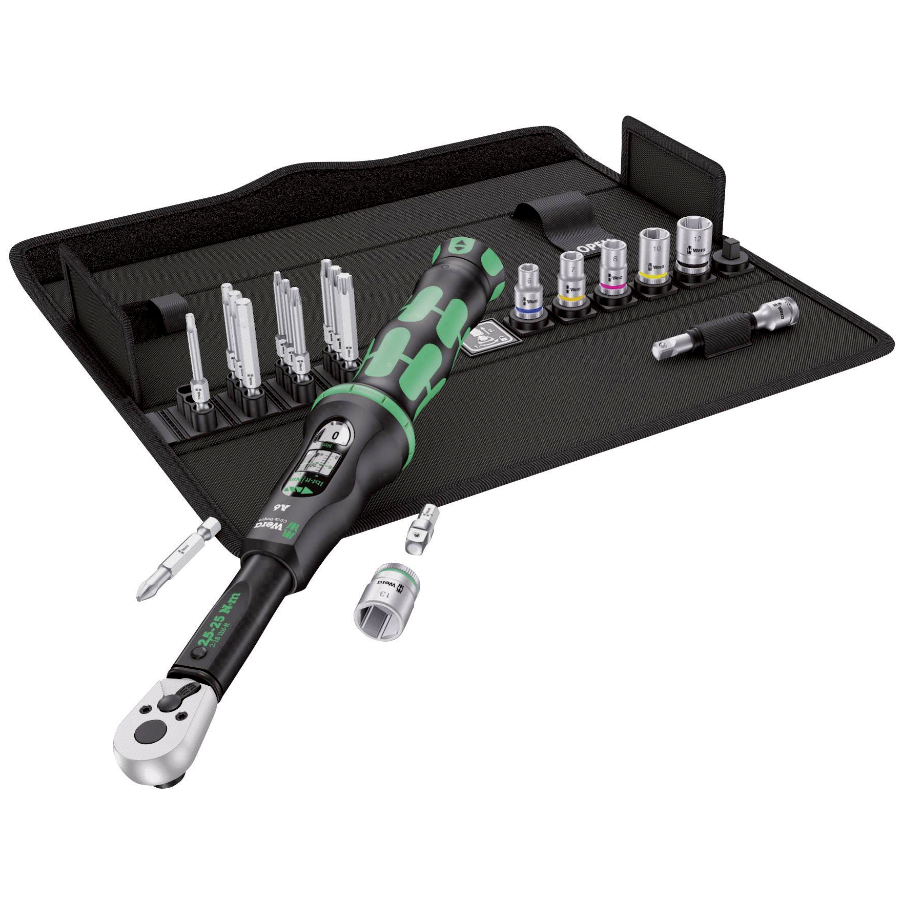 A Wera Click-Torque A6 nyomatékkulcs 2,5-25 Nm állítható nyomatékkal és 1/4 "hatlapfejű meghajtóval rendelkezik. A beállított érték elérésekor a kulcs hallhatóan és kézzel foghatóan elindul, majd azonnal használatra kész Az alapértelmezett érték és annak könnyen olvasható skálájának könnyű beállítása és rögzítése. Az óramutató járásával megegyező irányban történő meghúzáshoz és 45 fogas reverzibilis racsnissal. A készlet tartalmazza a Wera click nyomatékkulcsot és sokféle kiegészítőt, például 1/4 "meghajtású dugókulcs-betéteket, hatszögű foglalatot, keresztmetszetű PH- és TORX bitek, valamint hosszabbító és adapter. A készlet felületvédő textildobozban kerül kiszállításra. A kompakt textildoboz a mobilitás és a helyigény meg nem feledhetetlen megkönnyebbüléséhez vezet. A szett jelentősen csökkentett súlya sokkal kényelmesebbé teszi a szállítást. Az érzékeny felületek védettek a reszelés során. A textildoboz és az eszközök még sérülés nélkül is túlélik.