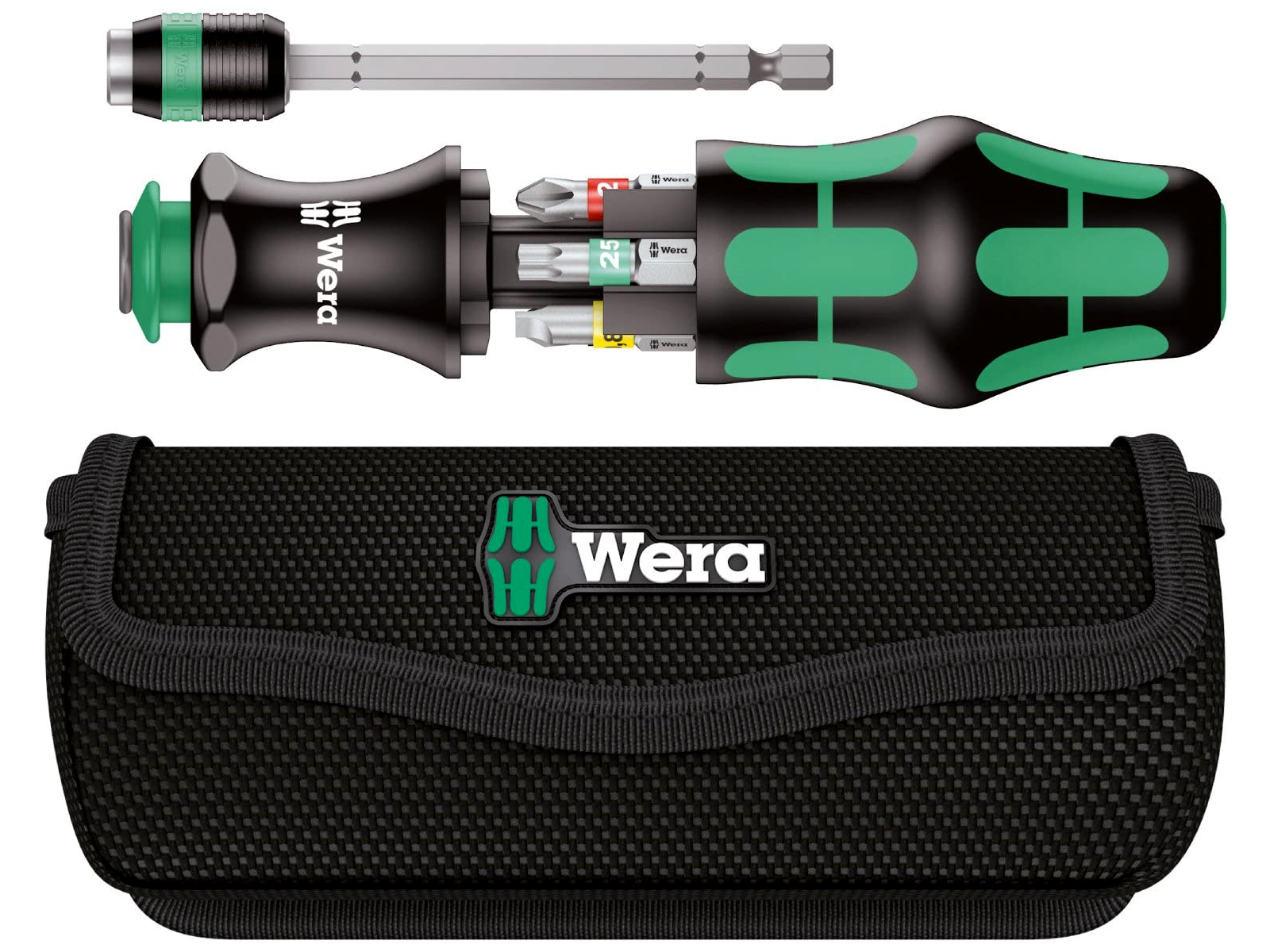 További információk 1/4 "-os külső hatlapú meghajtású bitekhez, a DIN ISO 1173-C 6.3 és E 6.3 szerint, valamint a Wera csatlakozási sorokhoz 1 és 4, csatlakozó rész, bajonett, Rapidaptor technológia gyors be- és kimenettel , gyors pörgetés, tokmányos és egykezes funkciók, integrált tár