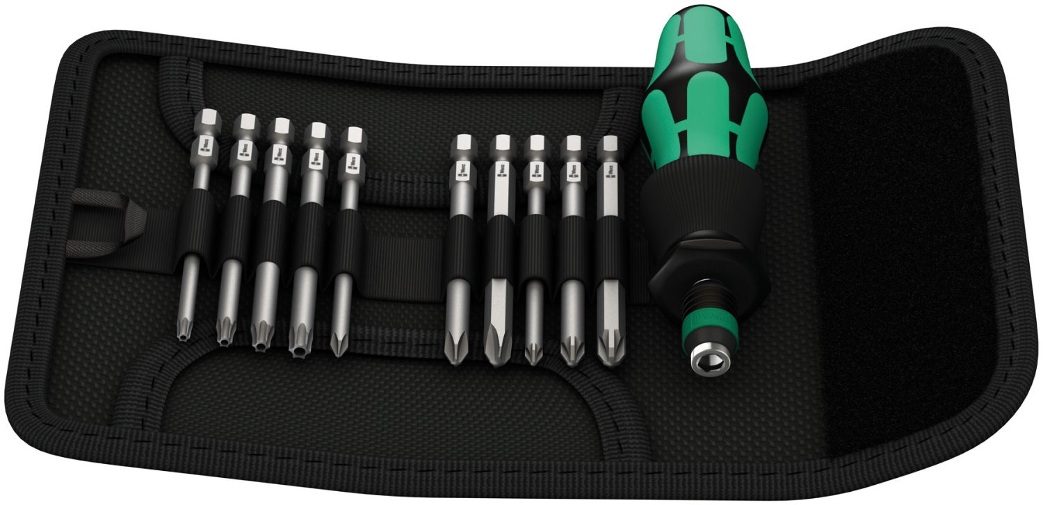 A 11 darabos Kraftform Kompakt 41 készlet 816 R Kraftform kézitartót tartalmaz a "Rapidaptor" gyorscserélő tokmány és a többkomponensű Kraftform fogantyúval a fáradtságmentes munkavégzés érdekében, valamint tíz 89 mm hosszú bitet. A Rapidaptor technológia lehetővé teszi a villámgyors bitcserét és jó vezetést a szabadonfutó hüvelyen keresztül. A szállított kemény bitek univerzális használatra alkalmasak. A készlet egy 10 darabos csavarhúzó készletet cserél, és minimálisra csökkenti a szükséges felszerelést. A Kraftform Kompakt 41 szett helyet takarít meg textil hajtogató táskában.