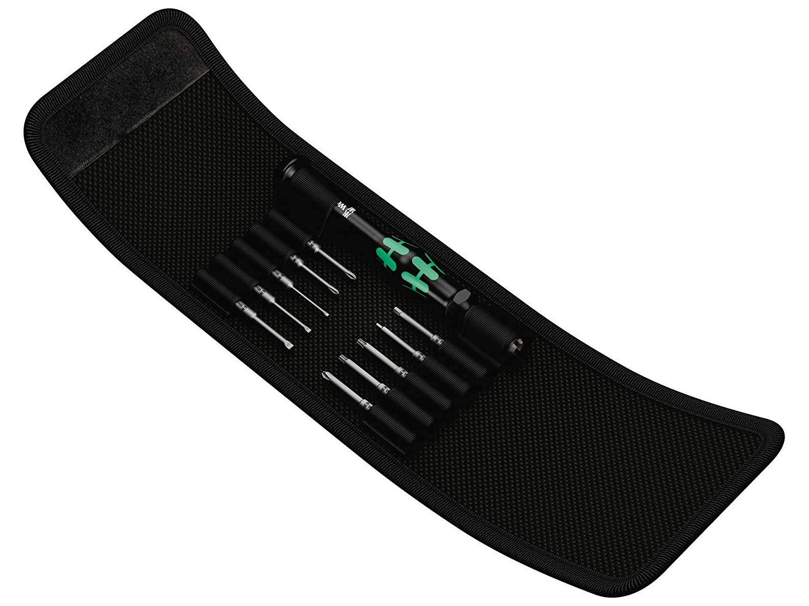 A Wera Kraftform Kompakt Micro Set / 11 SB kompakt 11 darabos bitkészlet. 10 bitet tartalmaz 44 mm hosszú változatban, 4 mm-es félhold meghajtással. Egy 1013-as Kraftform Micro Bits kézitartó is tartozik hozzá. Alkalmas 4 mm-es félholdas meghajtóval (és a Wera 9. sorozat) és 4 mm-es HIOS meghajtóval (és a Wera 21. sorozat) rendelkező bitekhez. A Kraftform Kompakt Micro Set / 11 SB Phillips, réselt, belső hatszög és TORX biteket tartalmaz, és robusztus összecsukható tasakban szállítják.