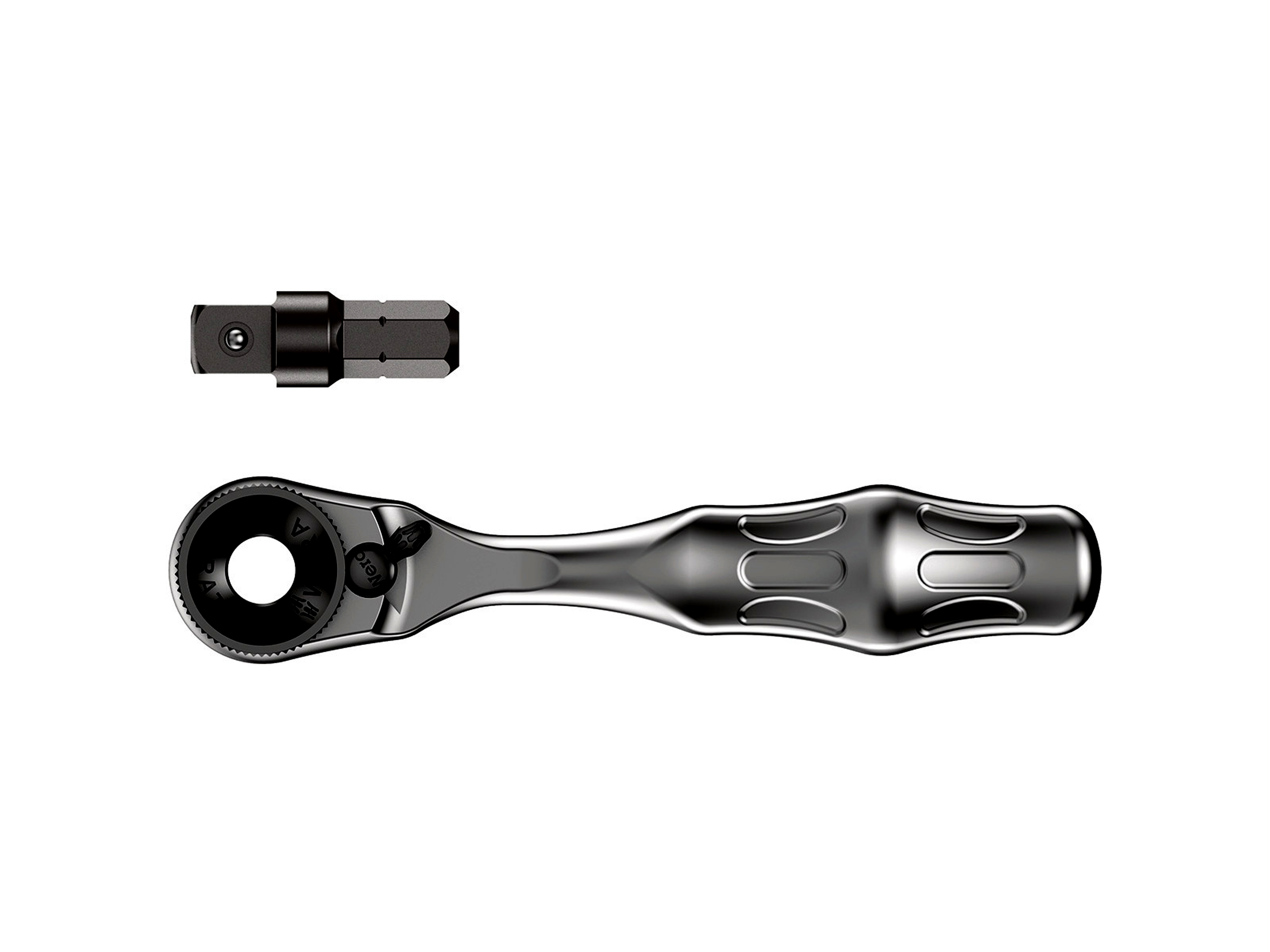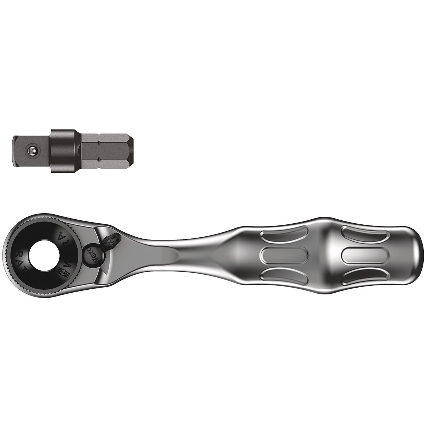 A WERA Zyklop Mini 1 bites racsnis a filigrán kialakítást hihetetlen robusztussággal ötvözi. A Zyklop Mini Bit Ratchet különösen gyors csavarozásra használják, még szűk munkakörülmények között is, és amikor a hely vagy gép miatt a géppel vagy hagyományos kéziszerszámmal történő csavarozás nem lehetséges. 1/4 "külső hatlapú meghajtóval és Wera csatlakozási sorokkal 1 és 4 rendelkező bitek fogadására alkalmas. A mellékelt adapter 1/4" hüvelyes kulcsbetétek használatára is használható. A Kraftform fogantyú kipróbált Kraftform geometriájával tökéletesen kialakított érintkezési felületeket kínál az ujjak számára.