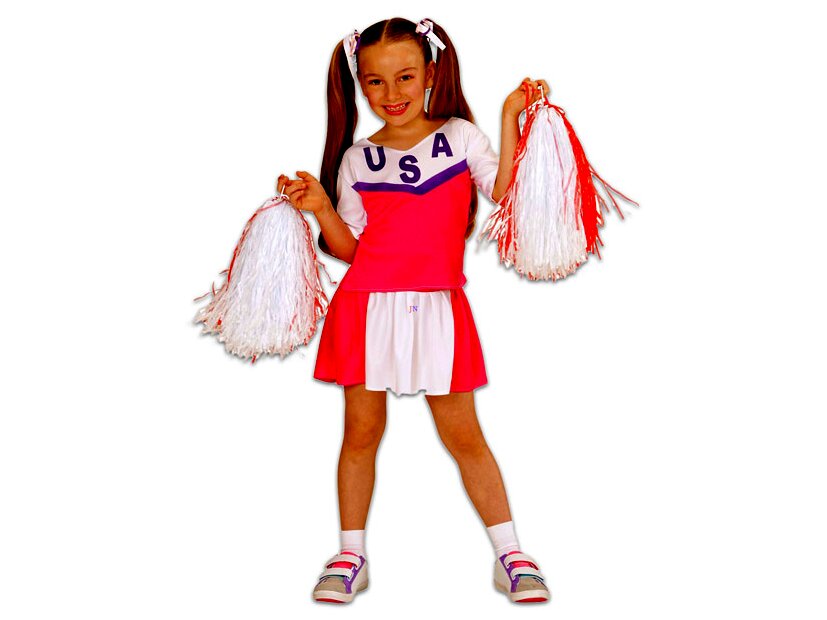 Szoknyából és felsőből álló pompom lány jelmez 128-as méretben. Öltözz pompom lánynak és szurkolj iskolád csapatának! Legyen szó farsangról, halloween-ról vagy bármilyen más beöltözős buliról, a pompom lány jelmez jó választás lesz.