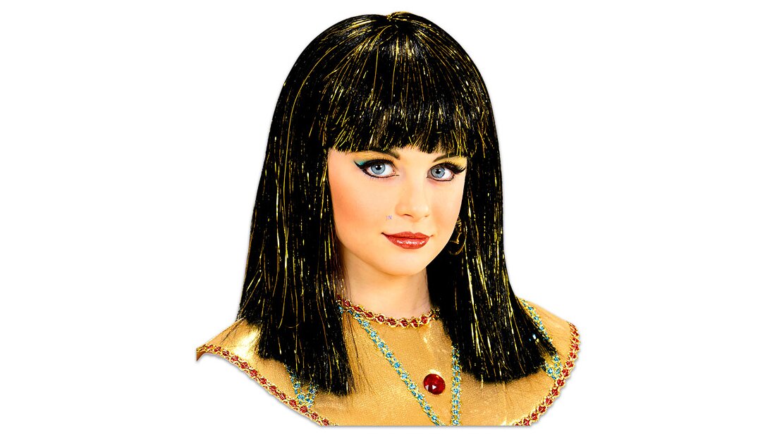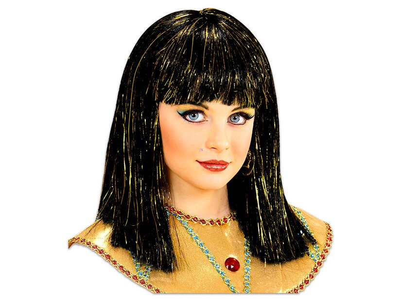 Kleopátra jelmezed kihagyhatatlan kelléke a Kleopátra paróka. Tedd a fejedre a parókát és érezd magad igazi egyiptomi hercegnőnek bármilyen beöltözős buliban! A paróka középhosszú, fekete, egyenes hajat varázsol neked. Ráadásként még aranyszálak is megcsillannak gyönyörű hajadban.