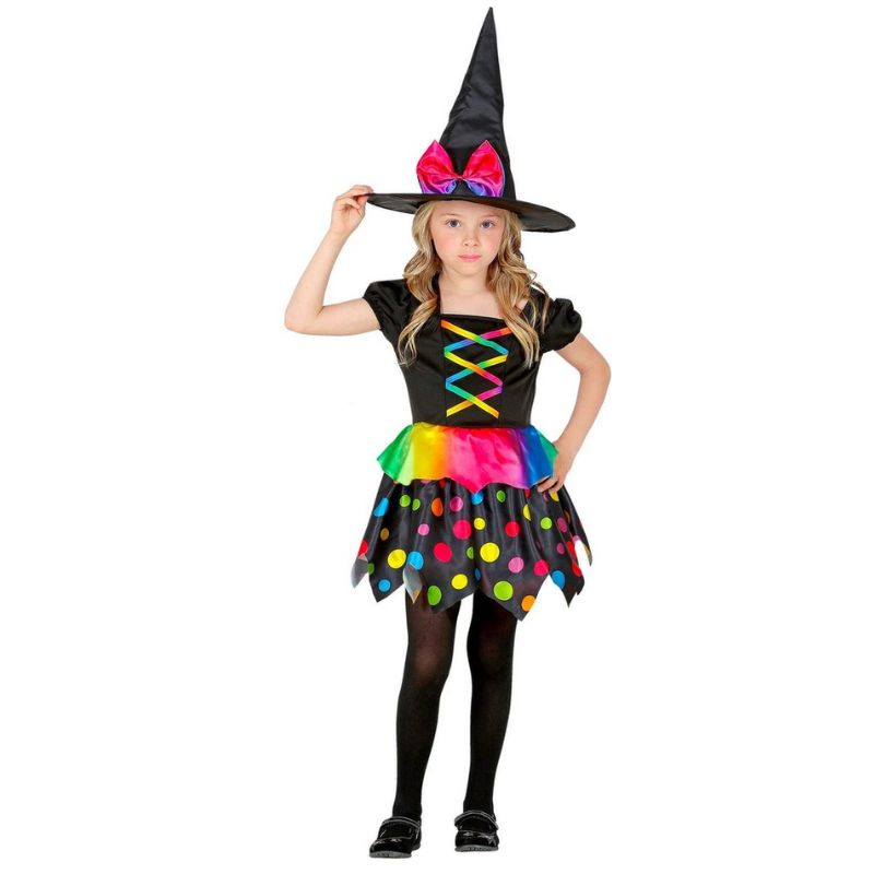 Cuki, színes boszorkányjelmez kis bosziknak. Farsangra, Halloweenre, vagy csak úgy egy jó kis beöltözős bulira vagy játszós délutánra.