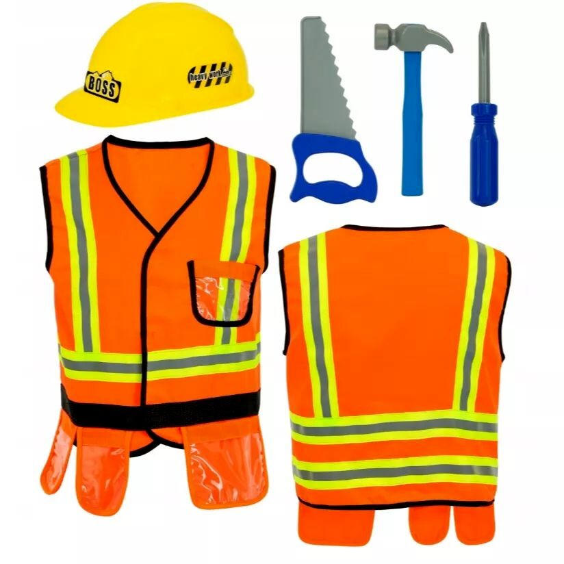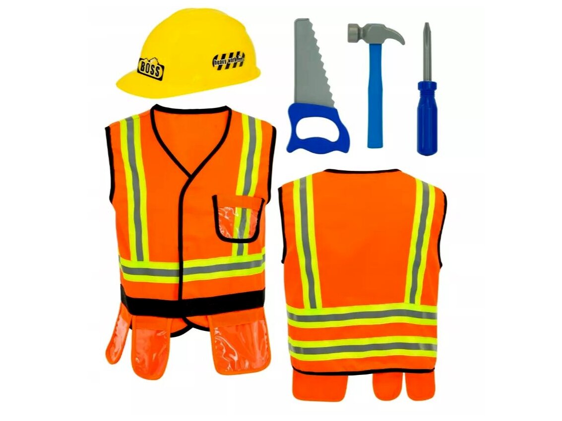 A szett központi eleme a narancssárga mellény, amelyet fényvisszaverő csíkok díszítenek. Ez nem csak a valódi munkaruhák hangulatát idézi, hanem a gyerekek számára is különlegessé teszi a játékot, hiszen „igazi” munkaruhában érezhetik magukat.