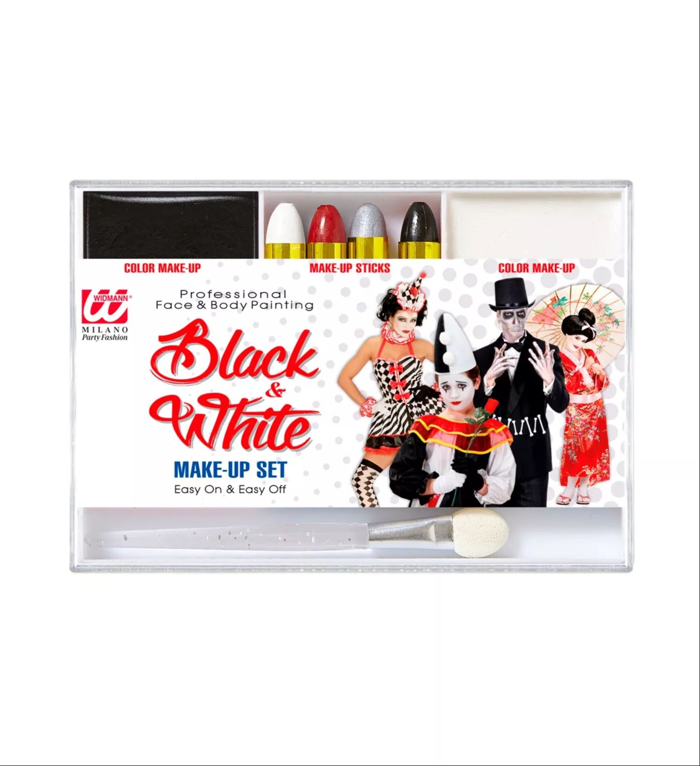 Widmann Fekete-fehér arcfestő készlet applikátorral tökéletes választás jelmezes bulikhoz, farsanghoz, halloweenhez vagy akár szülinapi partikhoz. A készletben található színek: fekete, piros, fehér és ezüst, ami minden kreatív elképzelésed megvalósításához elegendő.