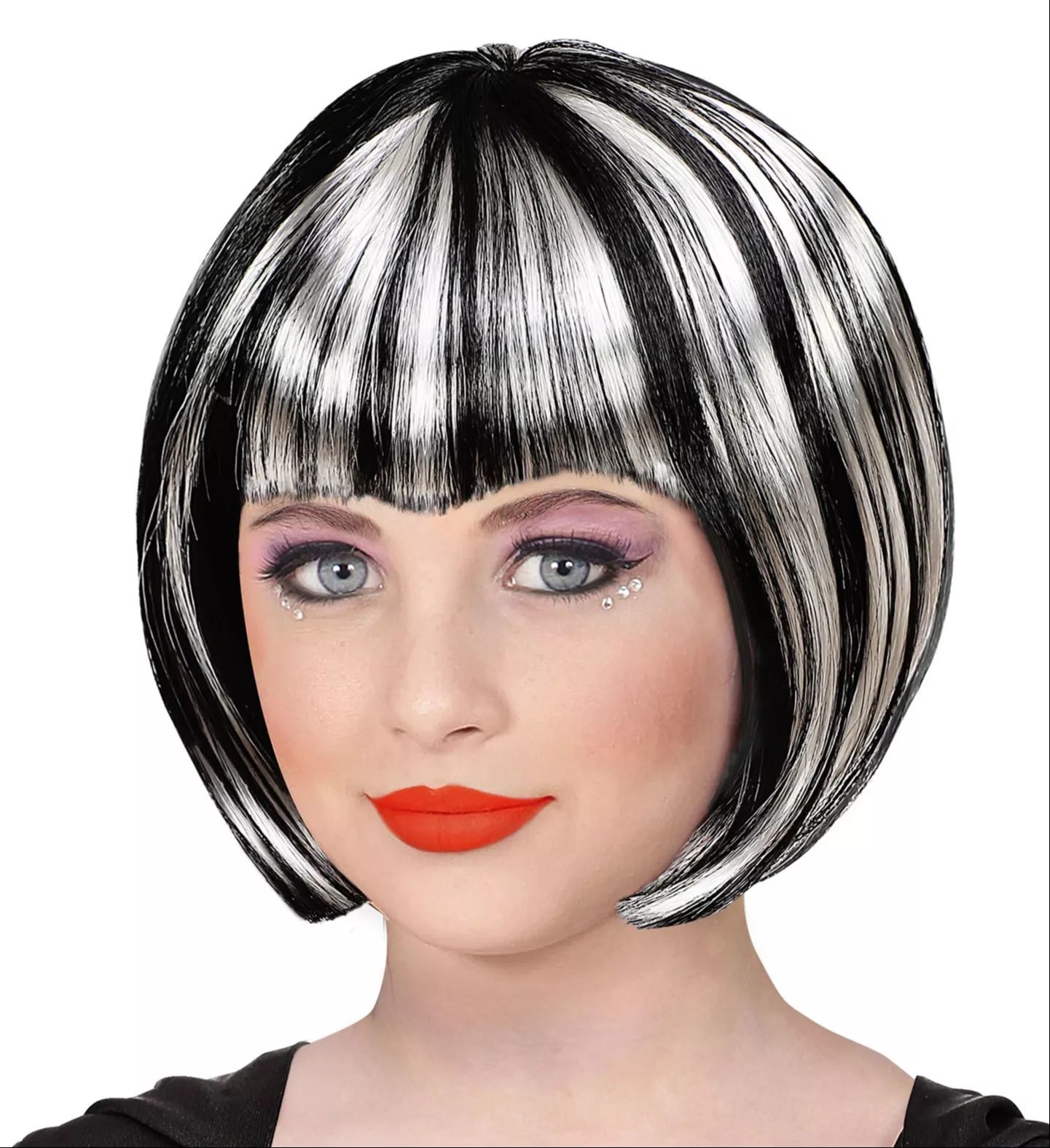 Változtassa meg megjelenését egy pillanat alatt a Widmann lenyűgöző fekete-fehér Halloween-i szintetikus parókájával! Ez a tökéletes kiegészítő a Halloween-i hangulat megteremtéséhez, és garantáltan felejthetetlenné teszi megjelenését a partikon.