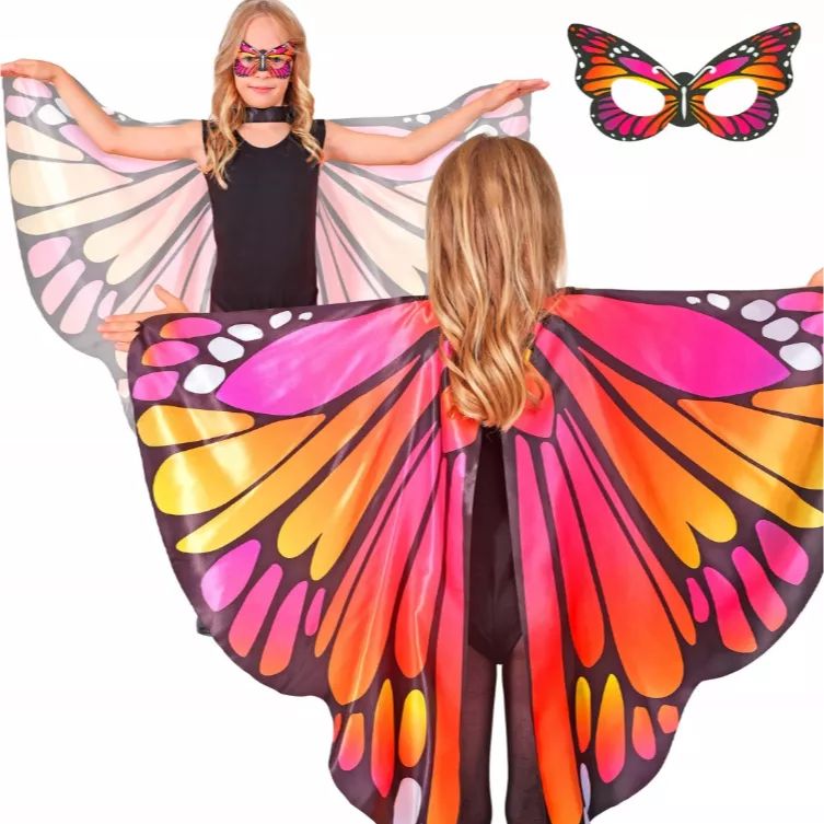 A szetthez tartozó pillangó maszk tovább fokozza az átalakulás élményét. A maszk könnyű, jól illeszkedik az arcra, gumipánttal vagy zsinórral rögzíthető, így viselése egyszerű és biztonságos. Segít, hogy a gyerekek teljesen beleélhessék magukat a szerepbe, miközben a szem környéke szabadon marad a kényelmes látás érdekében.