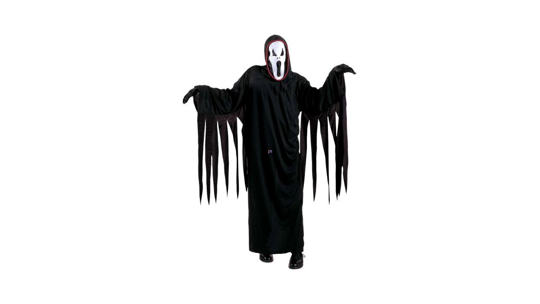 Varázsold el a farsangi vagy halloween bulit ezzel a félelmetes, fekete kísértet lepellel, amely ijesztő álarccal rendelkezik. Ideális választás 11 és 13 év közötti gyerekek számára, akik szeretnék, hogy minden tekintet rájuk szegeződjön!