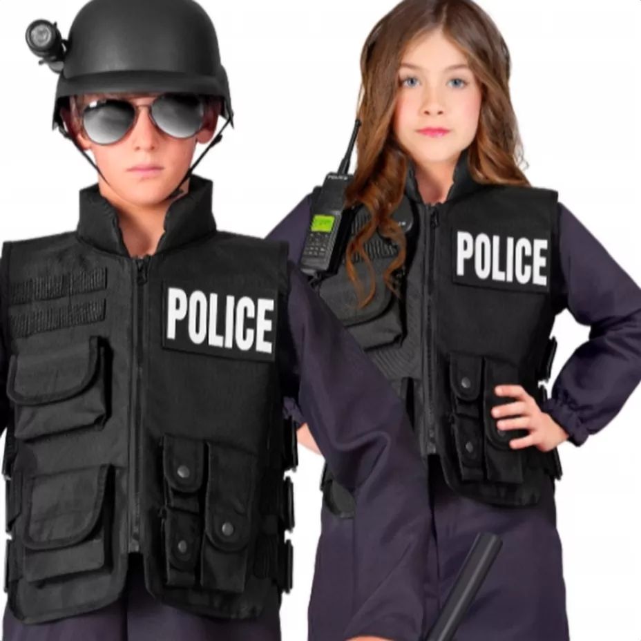 🧍 9–10 éves korosztályra tervezve: a 140 cm-es méret ideális választás az általános iskolás, rendvédelem iránt rajongó gyermekeknek. A mellény megjelenése élethű, mégis gyerekbarát, így tökéletes választás farsangra, tematikus bulikra, iskolai rendezvényekre vagy otthoni szerepjátékokra.