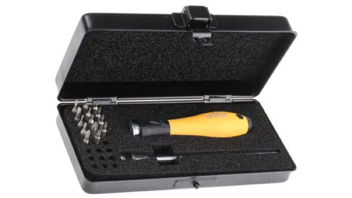 A Wiha SYSTEM 4 ESD 33848 bitkészlete 28 mm-es mikrobitek átfogó választékát tartalmazza 4 mm-es szárral és SoftFinish-teleszkópos ESD csavarhúzónyéllel. A mikrobitek az elektronikai alkatrészek különösen apró csavarjaihoz alkalmasak. A különösen ergonomikusan kialakított SoftFinish-teleszkópos ESD csavarhúzónyél biztosítja az elektronikus alkatrészek maximális védelmét. Az ESD-anyag elektrosztatikus felületi ellenállása 10^6 - 10^9 Ohm. Ez biztonságosan megvédi az alkatrészeket az elektrosztatikus energiától és a kapcsolódó károsodástól. Ergonomikus, többkomponensű fogantyúval rendelkezik, lecsúszás elleni védelemmel, 4 mm-es hatszögletű foglalattal az összes SYSTEM 4 penge számára, és lehetővé teszi a változó kombinált pengehossz beállítását 18-90 mm között. A ClickStop golyós rögzítő biztosítja a pengék biztonságos tartását és gyors cseréjét. A SYSTEM 4 ESD bitkészlet egy robusztus, habbetéttel ellátott dobozban található.