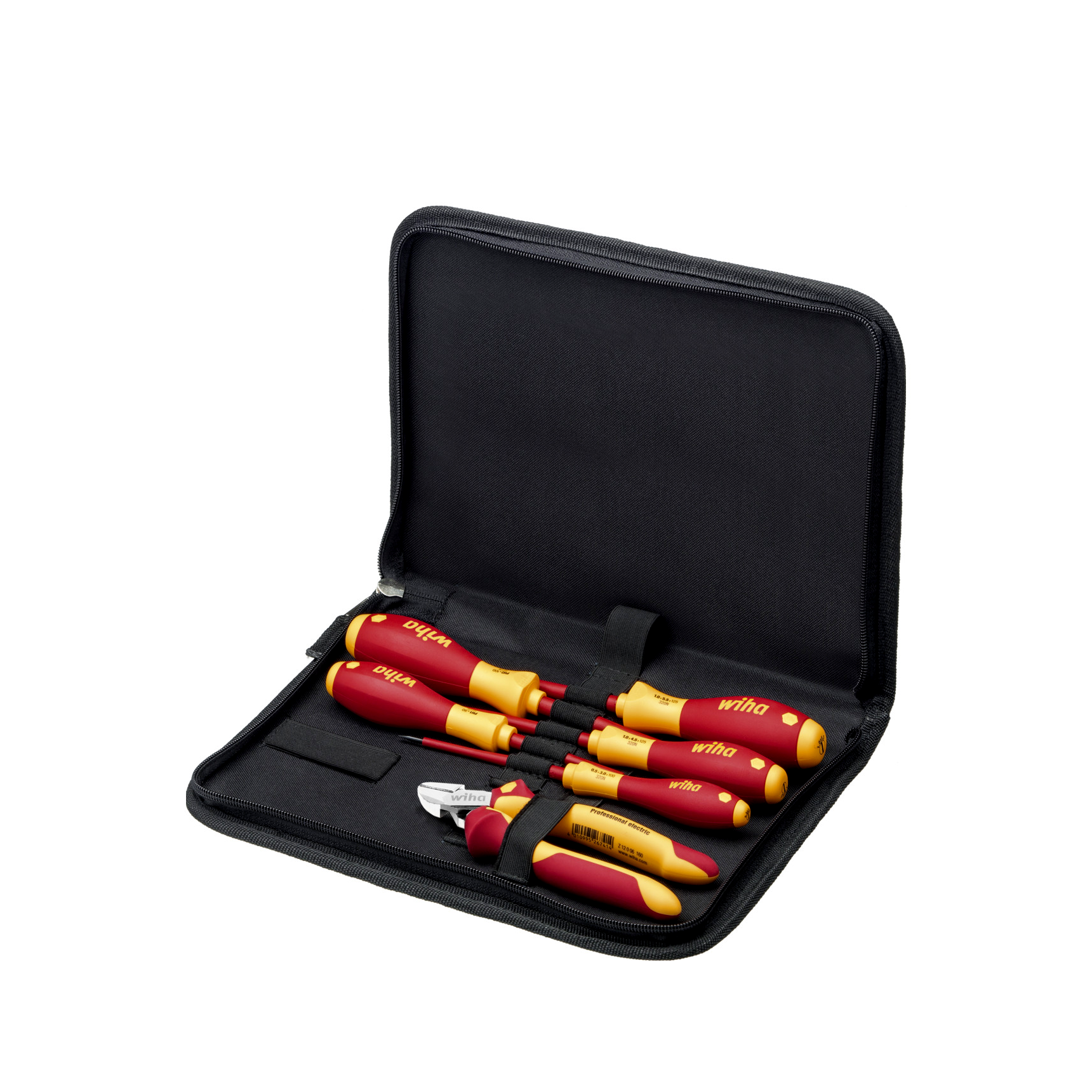 A 7 részes szerszámkészlet alapfelszereltség a leginkább elterjedt villanyszerelő alkalmazásokhoz. A teljesen felhajtható szerszámtáska cipzárral és hordfogantyúval, valamint kéziszerszámok tárolására alkalmas rekeszekkel elegendő helyet és áttekinthető elrendezést biztosít. A szigetelt SoftFinish electric SlimFix csavarhúzókkal a különösen karcsú pengének köszönhetően mélyen lévő csavarok és rugóelemek is könnyedén elérhetők. A szintén szigetelt erő-oldalvágó DynamicJoint®technológiával, egyedülálló csuklókonstrukcióval a kézi erő optimális átadásához teszi kerekké a szerszámtáska felszerelését.