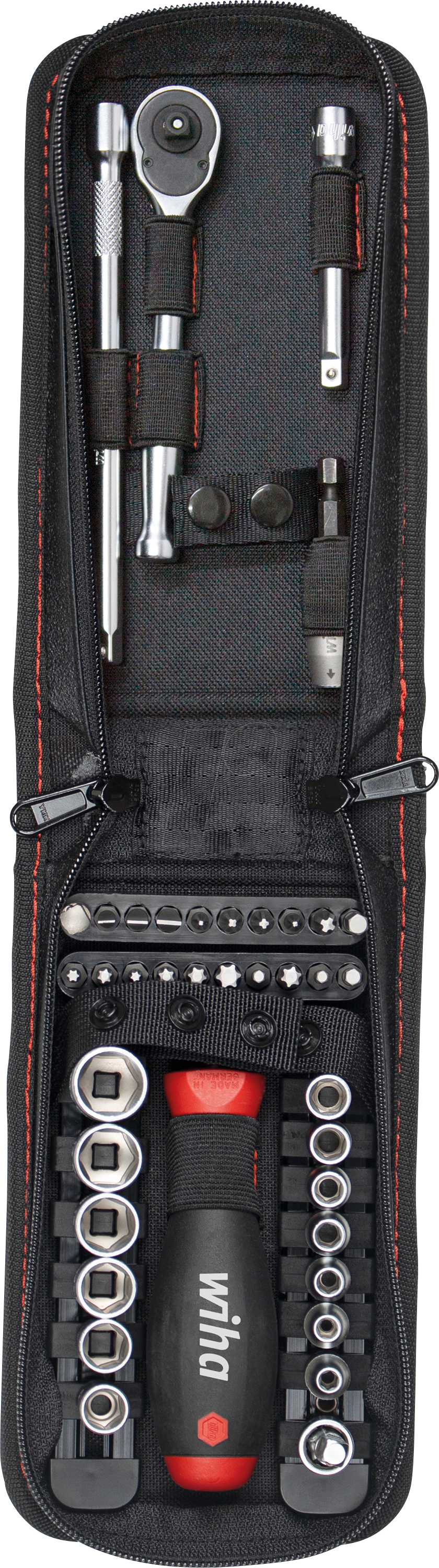 A mobilis munkavégzés esetében fontos, hogy a megfelelő eszköz gyorsan kéznél legyen. A 40 darabos 1/4"-os dugókulcs- és bitkészlettel a praktikus övtáskának köszönhetően a csavarozási munkákat egyetlen lépésben elvégezheti. A készlet tartalmazza a leggyakoribb 1/4"-os, 4-14 mm-es hatszögletű dugókulcsokat, különböző biteket, egy bittartót, egy racsnis kulcsot, két hosszabbítót, egy kardáncsuklót és egy 1/4"-os dugókulcs-adaptert. Ezzel jól fel van szerelve a szerelési és összeszerelési munkákhoz.