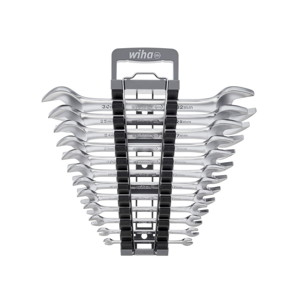 A hatlapú csavarok és anyák szorosra húzása és kioldása óriási erőt igényel. A Wiha kettős villáskulcsaival a felhasználó könnyedén meglazíthat bármilyen csavarkötést az emelőhatás révén. A 15°-os pofapozíciónak köszönhetően a kettős villáskulcs kiválóan alkalmas szűk helyeken történő munkavégzésre. Ezenkívül alkalmasak csavarok és anyák kontrázásához. A kiváló minőségű króm-vanádium acélból készült dugókulcs-betéteket tartósság és robusztusság jellemzi, nem utolsósorban a korrózióálló és könnyen tisztítható felületüknek köszönhetően. A készlet magában foglalja a 12 legnépszerűbb méretet 6-32 mm között, gondosan elhelyezve egy praktikus tartóban. A tartó egy kézzel nyitható, hogy könnyedén ki lehessen venni a megfelelő méretet.A csúszásgátló felület segít erős tartást elérni olajos vagy nedves munkakörülmények között is.