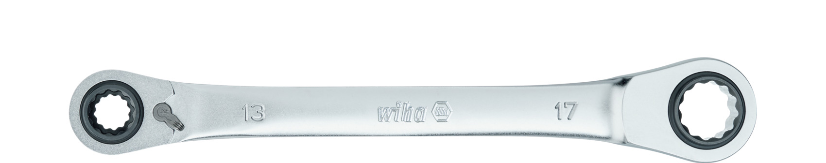 A szorosan meghúzott csavarok meglazítása óriási erőfeszítést igényel. A Wiha duplagyűrűs racsnis kulccsal a felhasználó könnyedén megnyithat bármilyen csavarkötést az emelőhatás révén. A négy különböző kulcsnyílásnak köszönhetően a felhasználónak egyetlen szerszámra van szüksége a 10/13/17/19 mm-es csavarprofilokhoz. Ez minimálisra csökkenti a felszerelésének súlyát, és helyet szabadít fel a szerszámosládában további felszerelések számára.