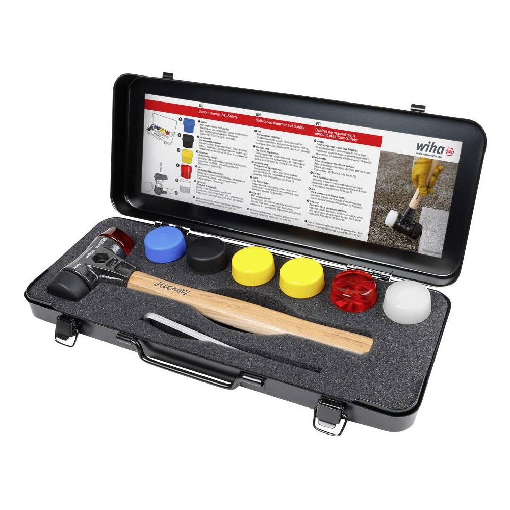 Az iparban és a kézműiparban gyakran különféle keménységű kalapácsfejekre van szükség a különböző alkalmazásokhoz. A biztonságos lágy kalapácskészlettel minden alkalmazáshoz jól fel van szerelve. A kalapácskészlet nyolc cserélhető, kerek, különböző keménységű fejet tartalmaz. A mellékelt hatszögletű kulcs segítségével ezek a kalapácsfejek az alkalmazástól függően gyorsan és egyszerűen cserélhetők. A lágy kalapács felhasználható érzékeny anyagok, például puha fa, műanyag vagy alumínium méréses egyszeri ütéshez, valamint öntödékben és nehéziparban végzett erőteljes ütések végrehajtásához. A biztonsági kalapács emellett lenyűgözi a Hickory fából készült kiváló minőségű kalapácsfogantyúval is, amely különösen könnyen megfogható felülettel rendelkezik. A kalapácsot és a fejüket egy robusztus és stabil dobozban tárolják. A készletben lévő összes alkatrész alkatrészként megvásárolható.