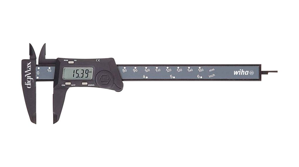 A Wiha digiMax digitális mérőkalapács 50% üvegszál-tartalmú, nem fémes high-tech anyagból készül. Az 5 számjegyű, 7,5 mm magas digitális kijelző 0,01 mm-es lépésekkel vagy opcionálisan 0,0005 hüvelykes lépésekkel is felosztható. A digiMax digitális mérőkalapács külső, belső és mélységmérésre alkalmas. Használaton kívül 5 perc után automatikusan kikapcsol. A gyors összehasonlító mérésekhez a nulla beállítása bármelyik pozícióban lehetséges. A készülékhez egy kb. 2 éves élettartamú akkumulátor (SR44, 1,55 V) tartozik.