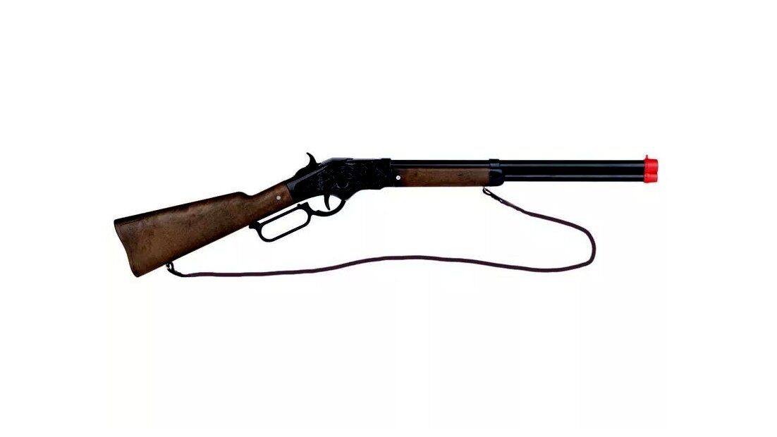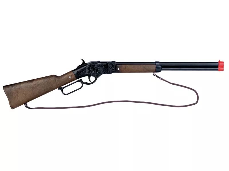Cowboy és indián jelmezekhez használatos játékpuska! A Winchester patronos puska egy műanyagból és fából készült nagyobb fegyver, amibe 8 darabos durranó patront tudsz betenni. Elsütéskor a fegyver nagyot fog pukkanni, ha meg van töltve, a puska bármilyen vadnyugati jelmezhez ideális. A csomagolás a patront nem, csak a fegyvert tartalmazza.
