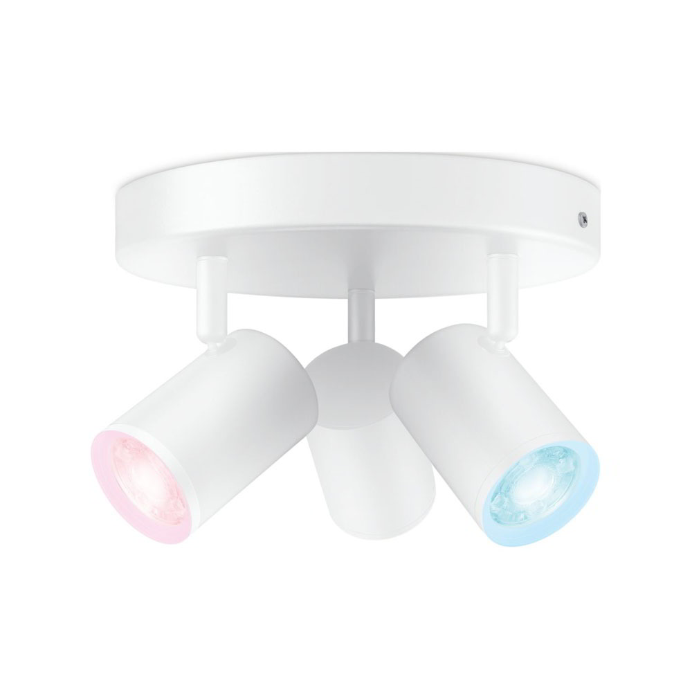 A stílusos kerek mennyezeti talapzaton három állítható spotlámpa sok szórakoztató lehetőséget kínál, hogy a szobákat gyönyörű fénnyel és színekkel árassza el. A spotlámpával kiválaszthat egy világítási jelenetet, vagy az alkalmazáson keresztül automatizált rutinokat használhat.