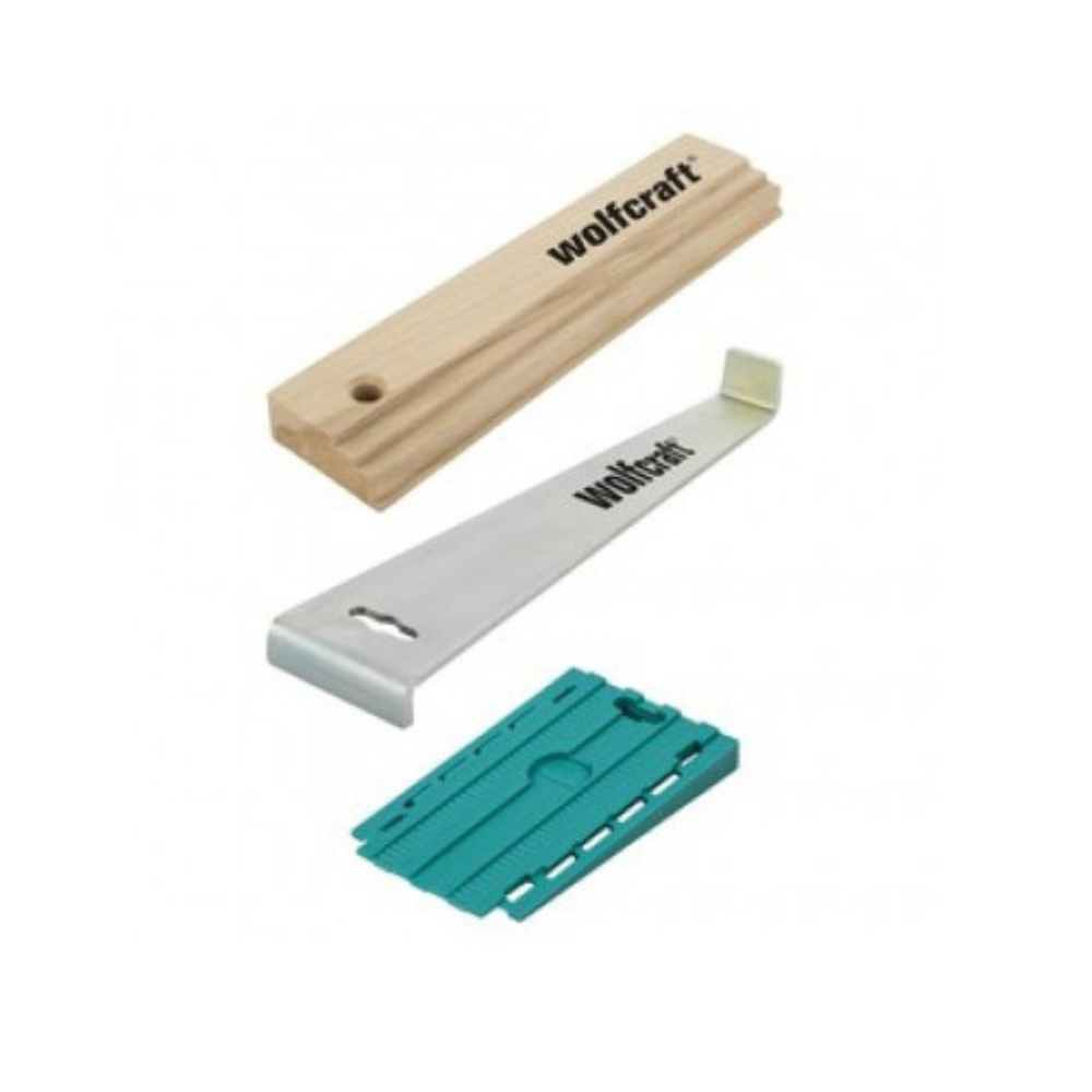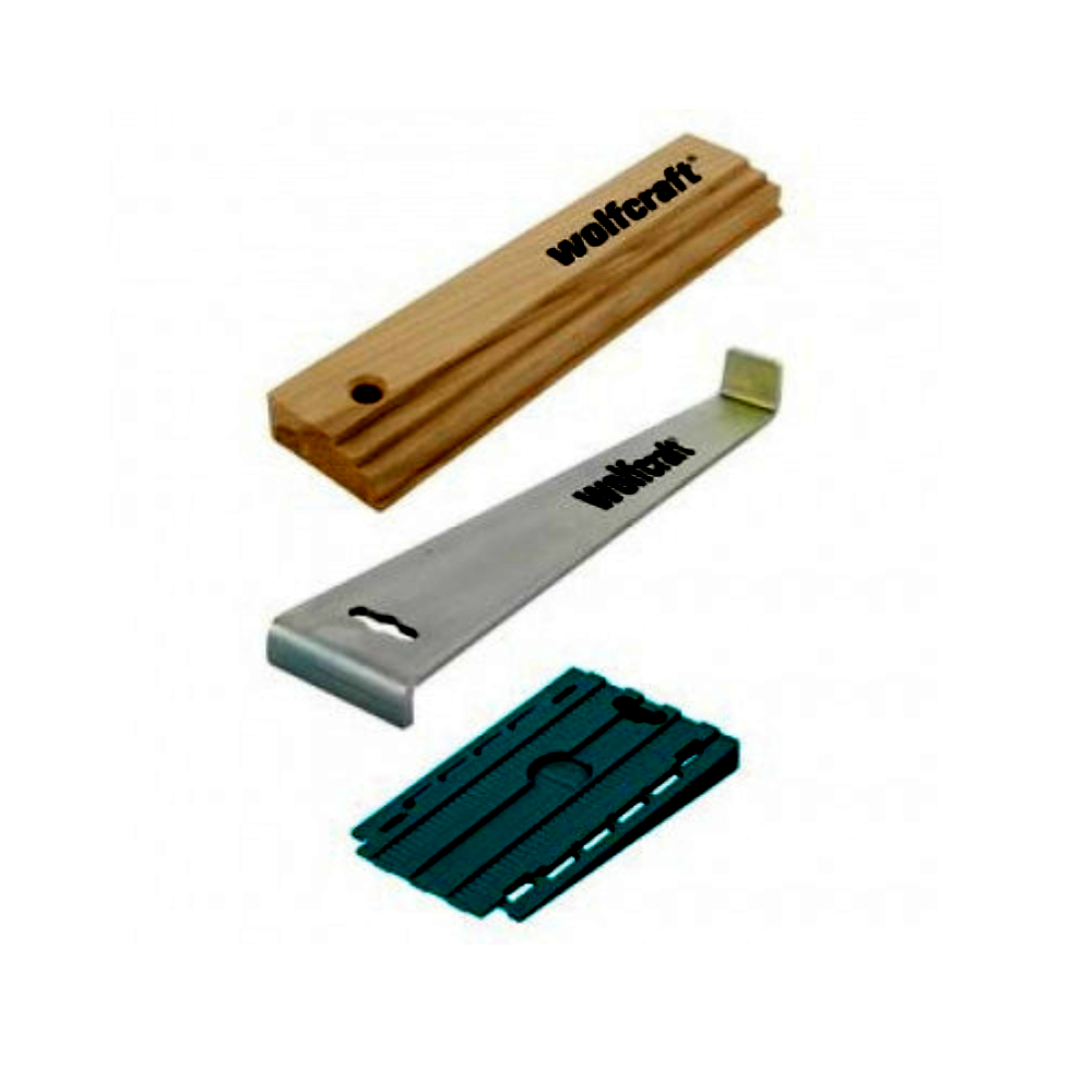 • 30 db univerzális ék – két irányba összetolható, raszterezett kialakítással a pontos távtartó-vastagság beállításához, akár azonos méretre előre beállítva is.