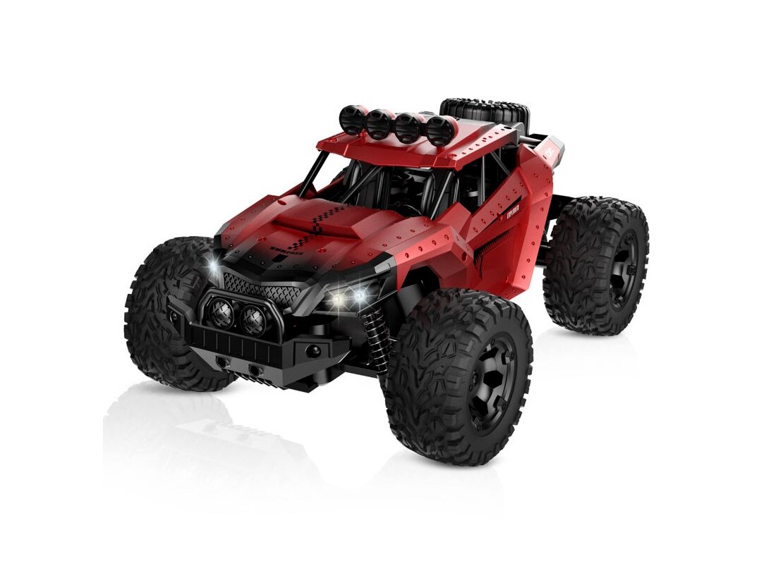 Az extra nagy méret és a széles nyomtáv stabil haladást biztosít még egyenetlen talajon is, miközben a független felfüggesztés és a bordázott gumik hatékonyan csillapítják az ütéseket. A 2,4 GHz-es vezérlésnek köszönhetően egyszerre több autó is használható egymás közelében zavarás nélkül, így versenyzésre is kiváló.