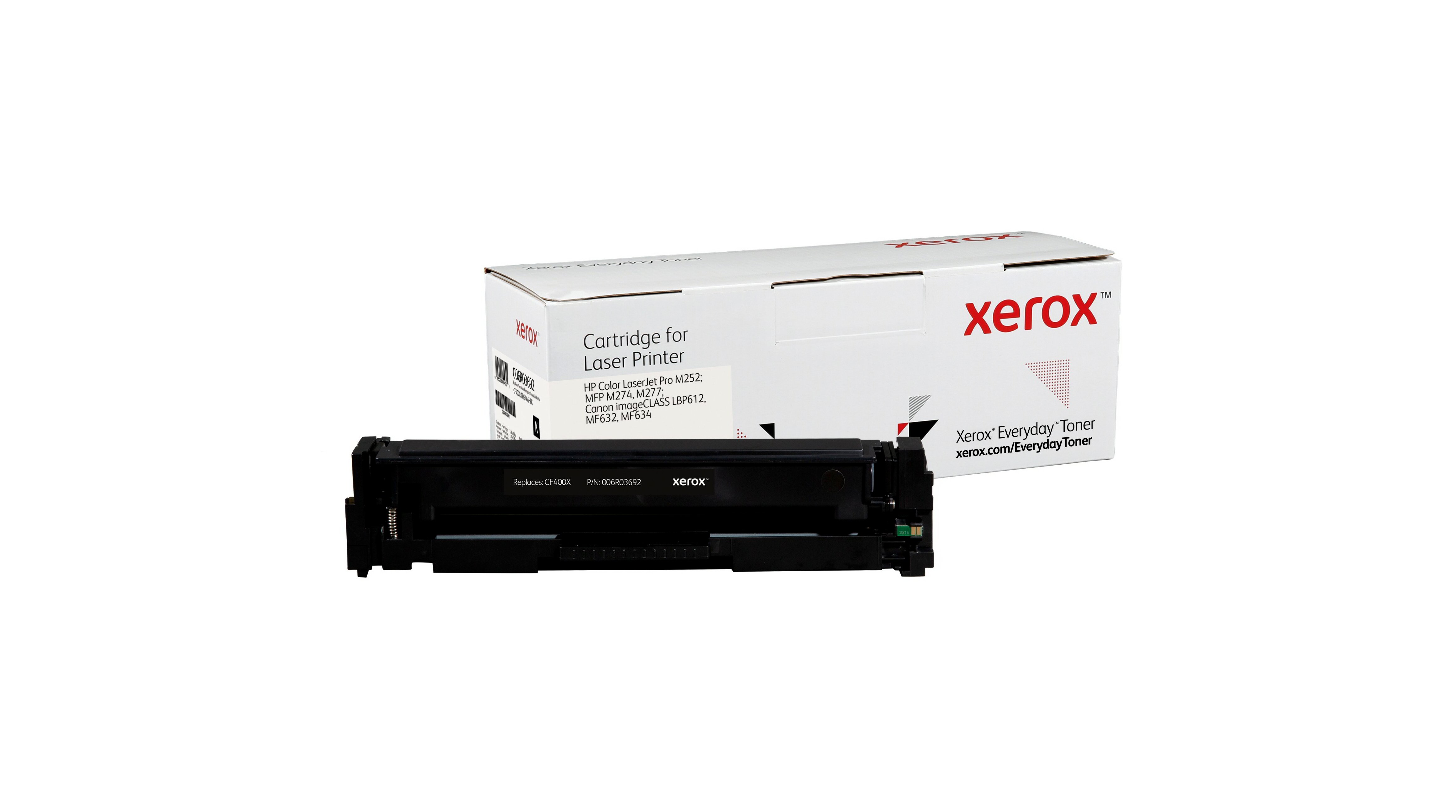 A Xerox 006R03692 fekete toner egyenértékű a HP CF400X / Canon CRG-045HBK tonerekkel, 2800 oldalas kapacitással rendelkezik és a Xeroxra jellemző teljesítményt, megbízhatóságot és biztonságot nyújtja, de az eredeti gyártói patronoknál alacsonyabb áron. A Xerox Everyday toner termékkínálat a vezető gyártók nyomtatókhoz és fénymásolókhoz való tonerkazettáit tartalmazza A4 és A3 formátumú nyomtatókhoz és fénymásolókhoz. A tonerekben lévő vegyi anyagok és a kazetta műanyag összetevői megfelelnek az iparági szintű egészségügyi és környezetvédelmi előírásoknak.