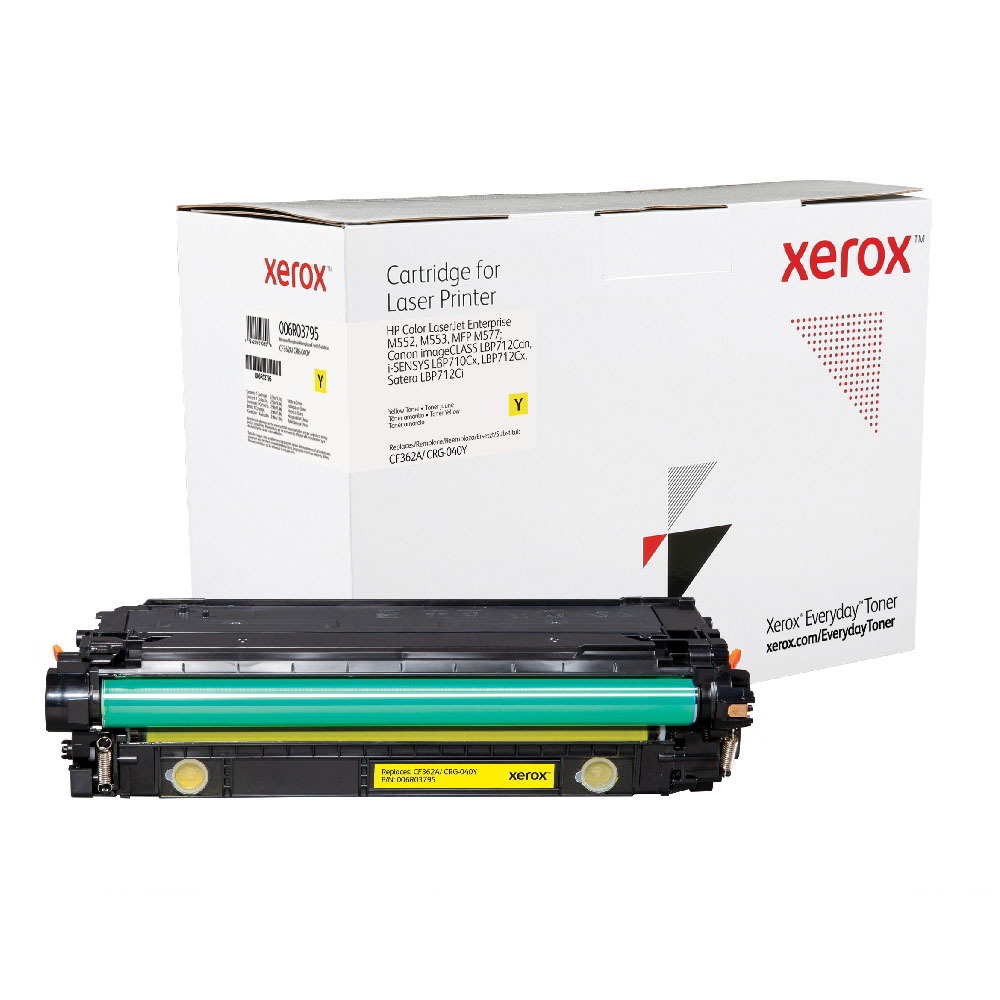 A Xerox 006R03795 sárga toner egyenértékű a HP CF362A / Canon CRG-040Y tonerekkel, 5000 oldalas kapacitással rendelkezik és a Xeroxra jellemző teljesítményt, megbízhatóságot és biztonságot nyújtja, de az eredeti gyártói patronoknál alacsonyabb áron. A Xerox Everyday toner termékkínálat a vezető gyártók nyomtatókhoz és fénymásolókhoz való tonerkazettáit tartalmazza A4 és A3 formátumú nyomtatókhoz és fénymásolókhoz. A tonerekben lévő vegyi anyagok és a kazetta műanyag összetevői megfelelnek az iparági szintű egészségügyi és környezetvédelmi előírásoknak.