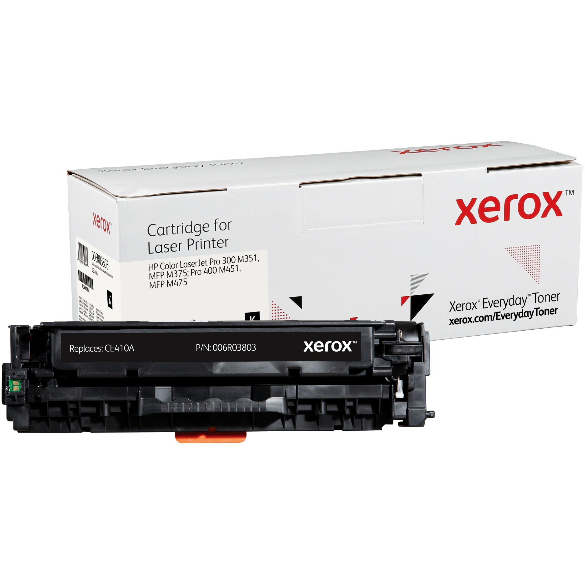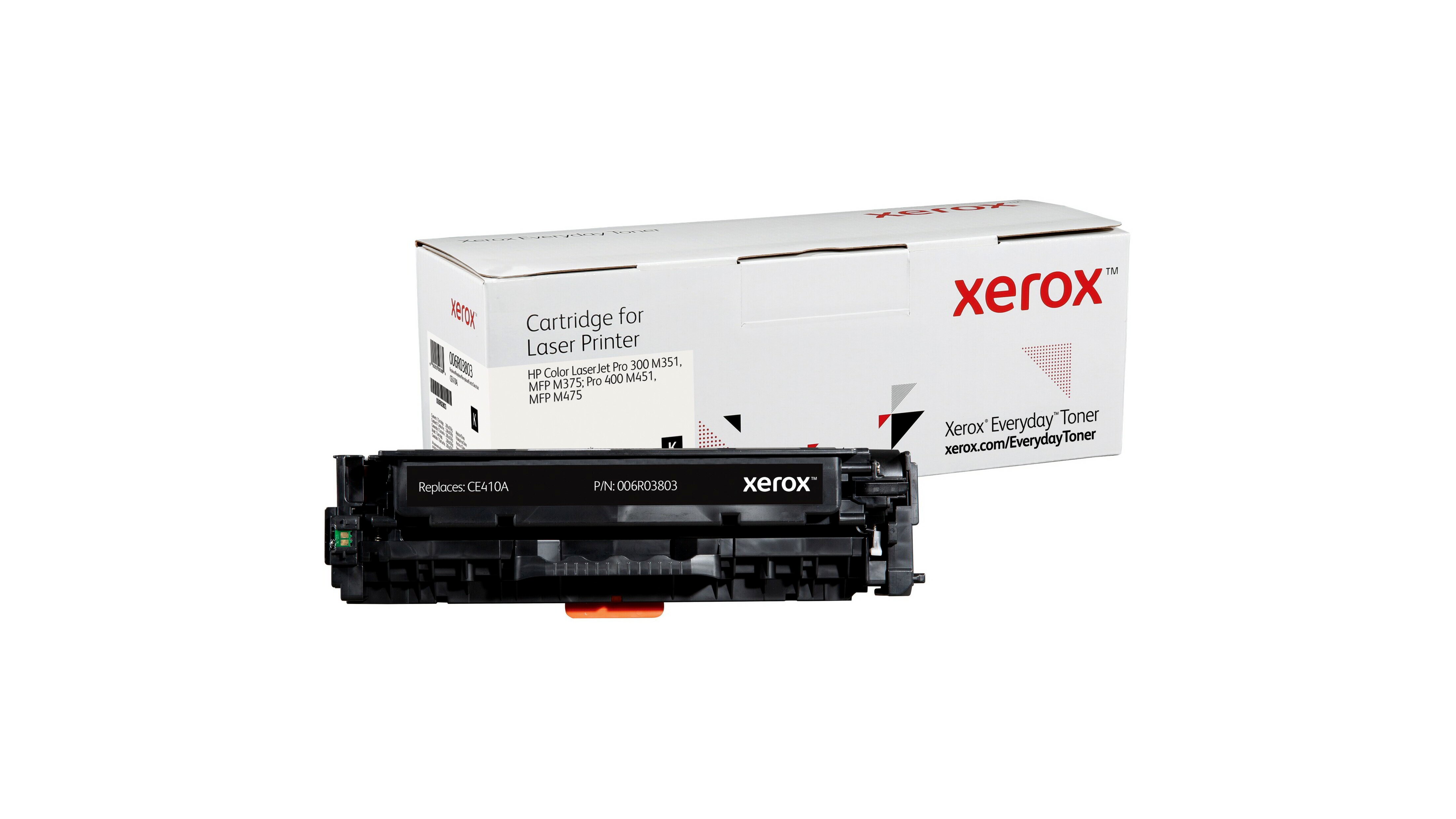 A Xerox 006R03803 fekete toner egyenértékű a HP CE410A tonerrel, 2200 oldalas kapacitással rendelkezik és a Xeroxra jellemző teljesítményt, megbízhatóságot és biztonságot nyújtja, de az eredeti gyártói patronoknál alacsonyabb áron. A Xerox Everyday toner termékkínálat a vezető gyártók nyomtatókhoz és fénymásolókhoz való tonerkazettáit tartalmazza A4 és A3 formátumú nyomtatókhoz és fénymásolókhoz. A tonerekben lévő vegyi anyagok és a kazetta műanyag összetevői megfelelnek az iparági szintű egészségügyi és környezetvédelmi előírásoknak.