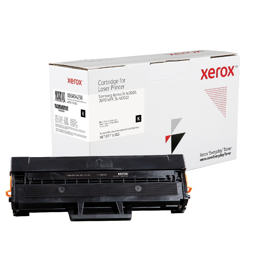 A Xerox 006R04298 fekete toner egyenértékű a Samsung MLT-D111L tonerrel, 2000 oldalas kapacitással rendelkezik és a Xeroxra jellemző teljesítményt, megbízhatóságot és biztonságot nyújtja, de az eredeti gyártói patronoknál alacsonyabb áron. A Xerox Everyday toner termékkínálat a vezető gyártók nyomtatókhoz és fénymásolókhoz való tonerkazettáit tartalmazza A4 és A3 formátumú nyomtatókhoz és fénymásolókhoz. A tonerekben lévő vegyi anyagok és a kazetta műanyag összetevői megfelelnek az iparági szintű egészségügyi és környezetvédelmi előírásoknak.
