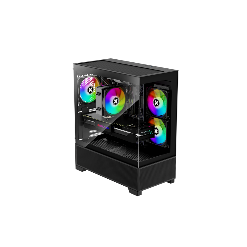 A Xilent Beam gyönyörű, edzett üveg panoráma ablakkal rendelkezik, amely tökéletes rálátást biztosít a telepített hardverre, lélegzetelállítóan prezentálva azt. Ez a ház nemcsak a kinézetével nyűgöz le, hanem funkcionális jellemzőivel is; még intenzív játék közben is kiváló légáramlást biztosít.