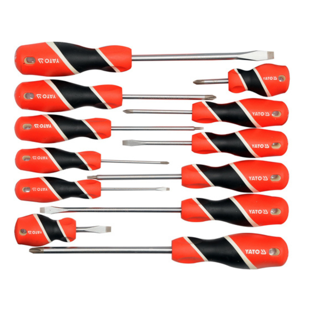 Egy jól összeállított csavarhúzó készlet alapfelszerelés mind a műhelyben, mind az otthoni szerszámosládában. Ez a 12 részes, kézi használatú csavarhúzó szett univerzális felhasználásra készült, így széles körben alkalmazható szerelési, karbantartási és javítási feladatoknál – akár fa-, fém- vagy műanyag elemek rögzítéséről van szó.