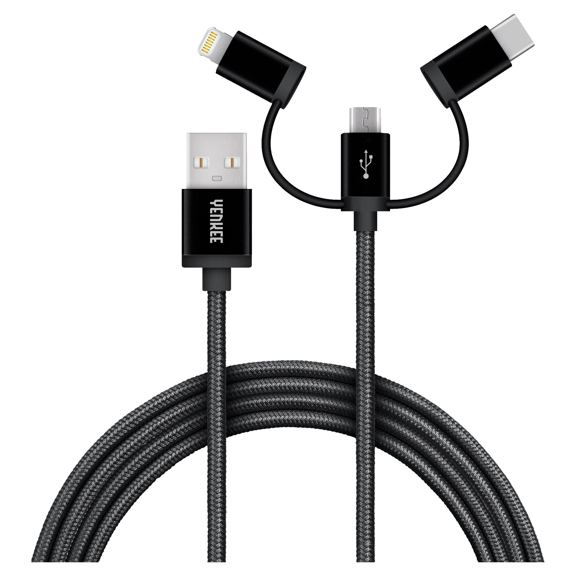 A bármilyen típusú okoskészülékhez való univerzális adat- és töltőkábel támogatja a gyors töltést és a nagy adatátviteli sebességet. A 3 az 1-ben kialakításnak köszönhetően ideális autóba, utazáshoz és bárhol, ahol különböző okoskészülékek csatlakoztatására lehet szükség. A kábel Micro USB, USB-C és tanúsított Lightning csatlakozóval rendelkezik. A tökéletes alumínium ház és az ellenálló nylon fonat garantálja a kábel ellenállóságát, rugalmasságát és hosszú élettartamát.