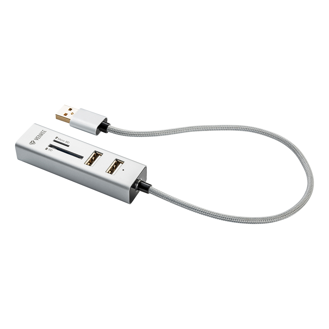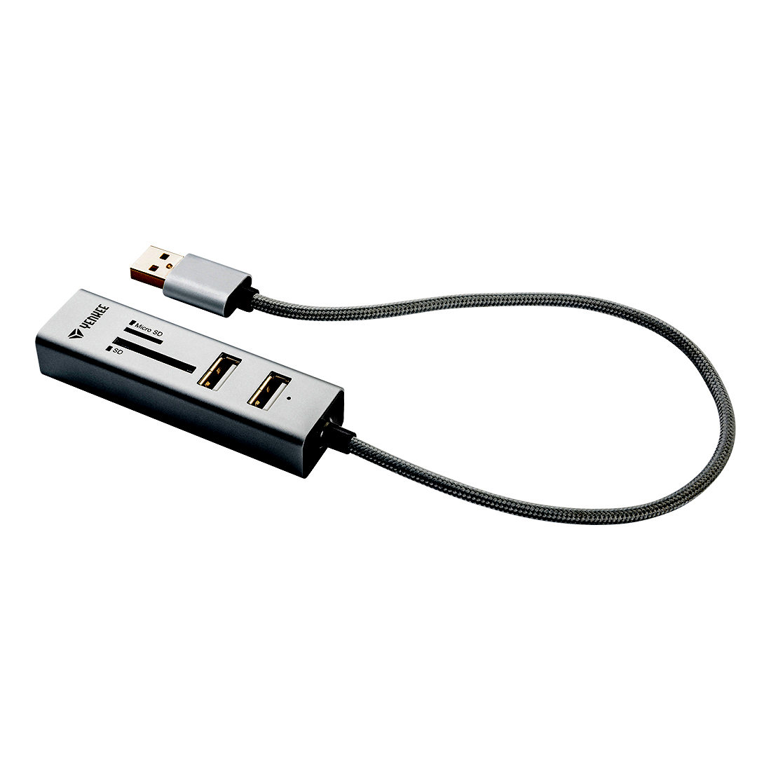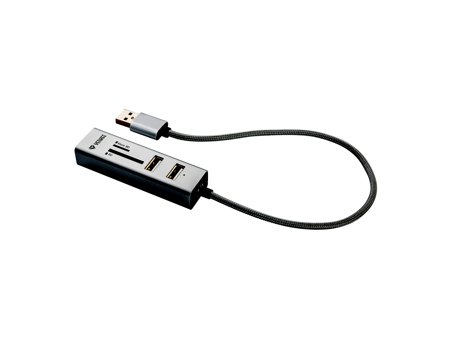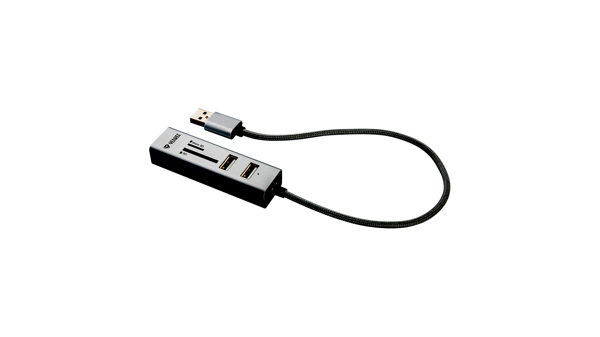 Egy elosztó és egy kártyaolvasó kombinációjából készült stílusos USB 2.0 adapter.