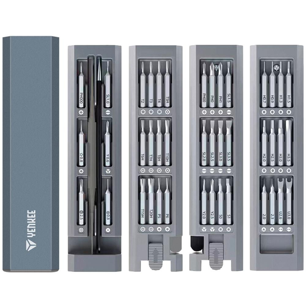 Legyen szó telefonról, fényképezőgépről, távirányítóról, laptopról vagy más eszközről, ezzel a szettel az eszközök karbantartása gyerekjáték lesz. A készlet 42 különböző bitet kínál, a szabványos kereszt- és lapos bitektől a nagyon ritka és speciális bitekig. A készlet tartalmaz még egy precíziós csipeszt és egy kis fém kétoldalas feszítővasat, például notebookok kinyitásához. A készlet prémium fémmegmunkálása megakadályozza a bitek elhajlását vagy leromlását, ugyanakkor ellenállóbbá teszi a leeséssel szemben.