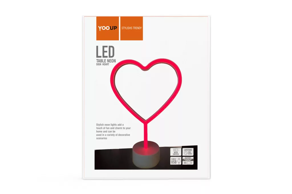 • Kivitel: asztali, szív alakú neonhatású dekorfény