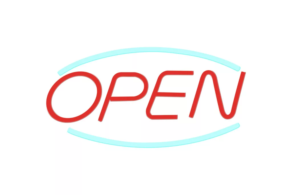 Figyelemfelkeltő „Open” felirat – már messziről jelzi a nyitottságot, vonzza a tekintetet, és segít, hogy ne menjen el a vendég az ajtó előtt.