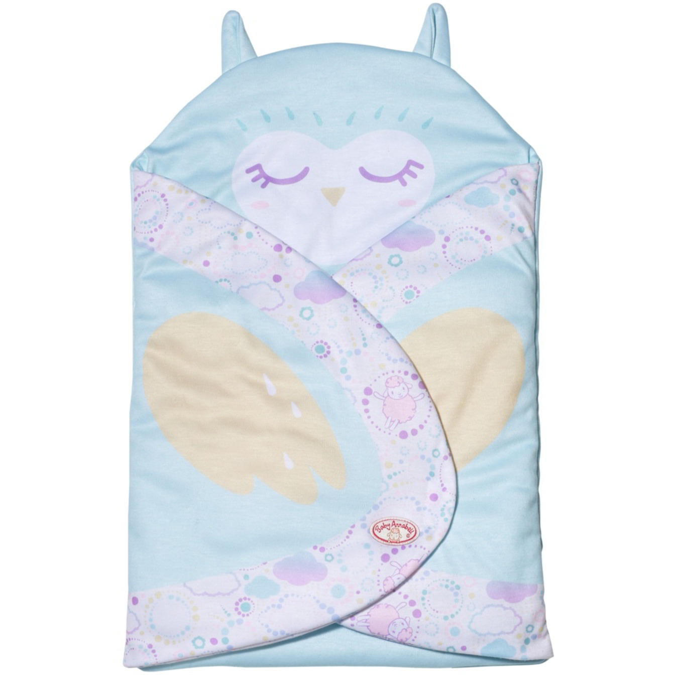 A takaró oldalai a jól ismert bepólyázási technikával könnyedén befordíthatók, így emlékeztetve minket a szárnyakra, amelyek ráadásul még nyomtatott mintákkal is vannak díszítve. Ezzel a kis „bagolyfészkével” Baby Annabell teljes kényelemben és biztonságban érezheti magát, miközben álomba szenderül.