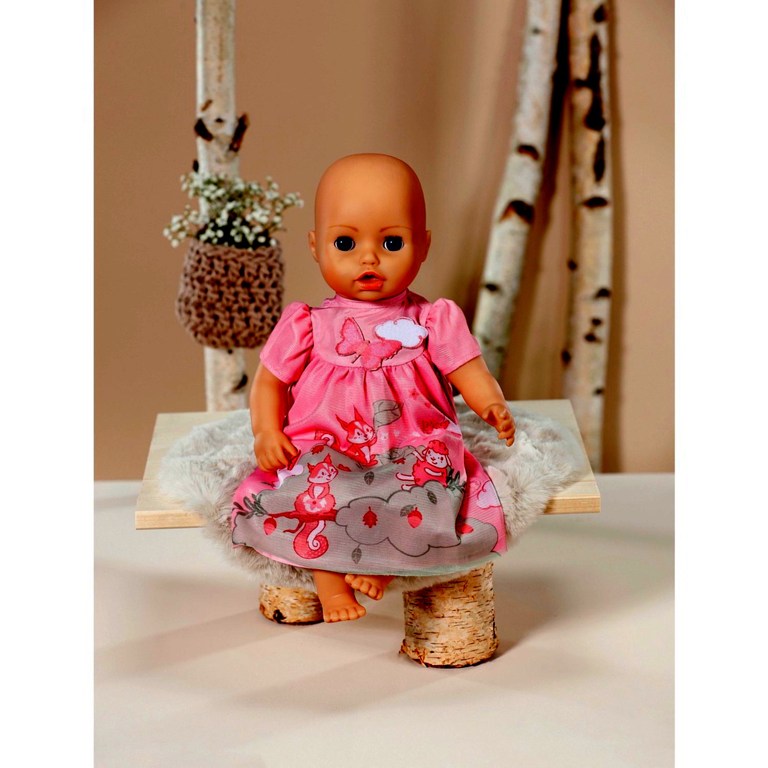 Fedezd fel a Baby Annabell világát ezzel a gyönyörű rózsaszín ruhával! Az aprólékosan kidolgozott ruha minden olyan elemet tartalmaz, amit Annabell imád: egy rózsaszín pillangót, amely bárányfelhők között repked, valamint aranyos mókuskákat is, amelyek igazán mesebeli hangulatot keltenek.