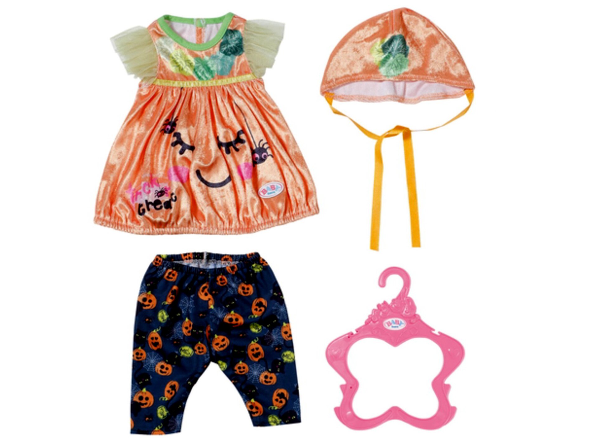 A baba felveszi aranyos Halloween jelmezét, hogy babaszüleivel körbejárhassa a környéket édességet gyűjteni. Léggömb formájú ruhájában és narancssárga sapkájában úgy néz ki, mint egy Halloweeni-tök.