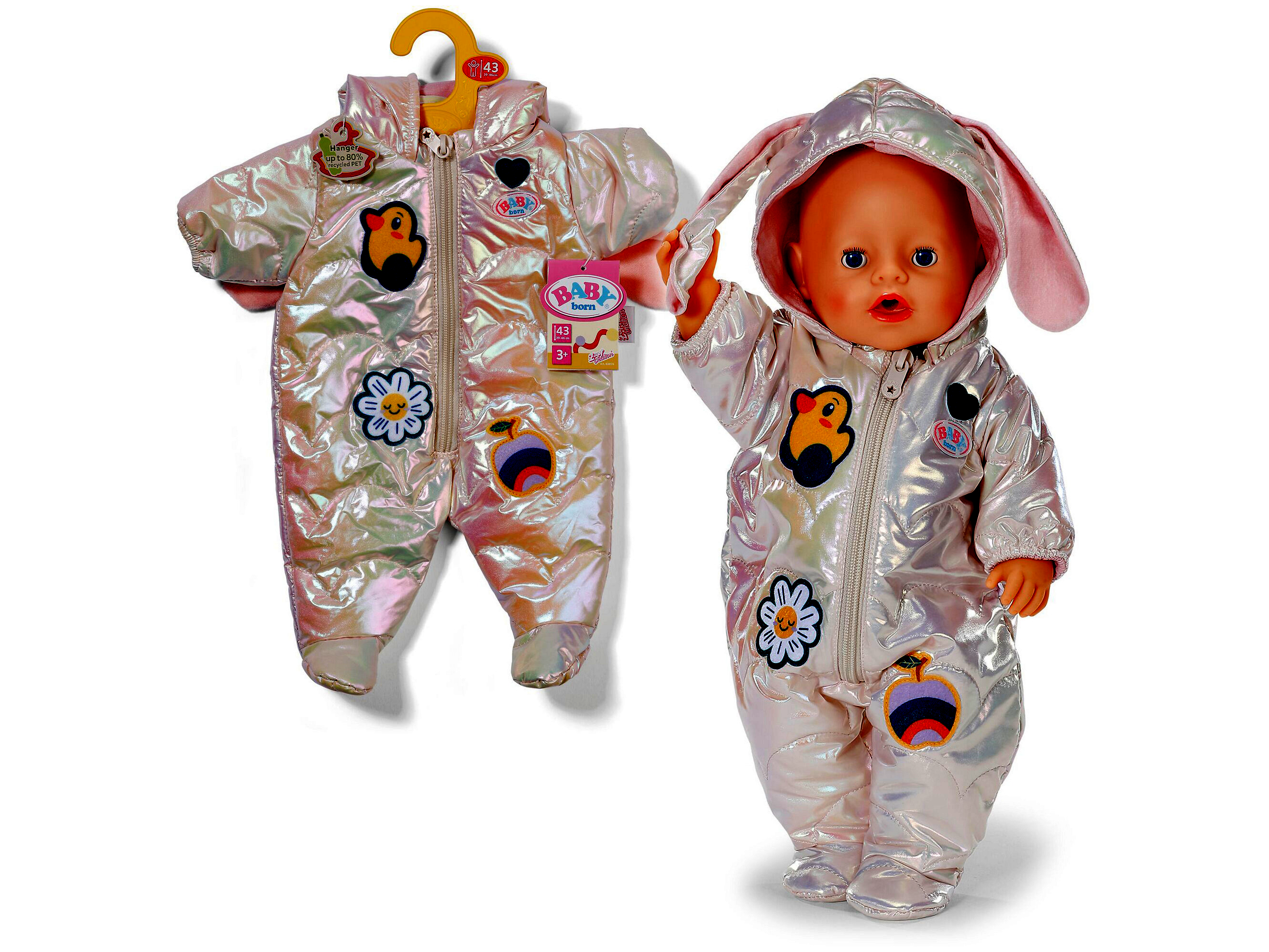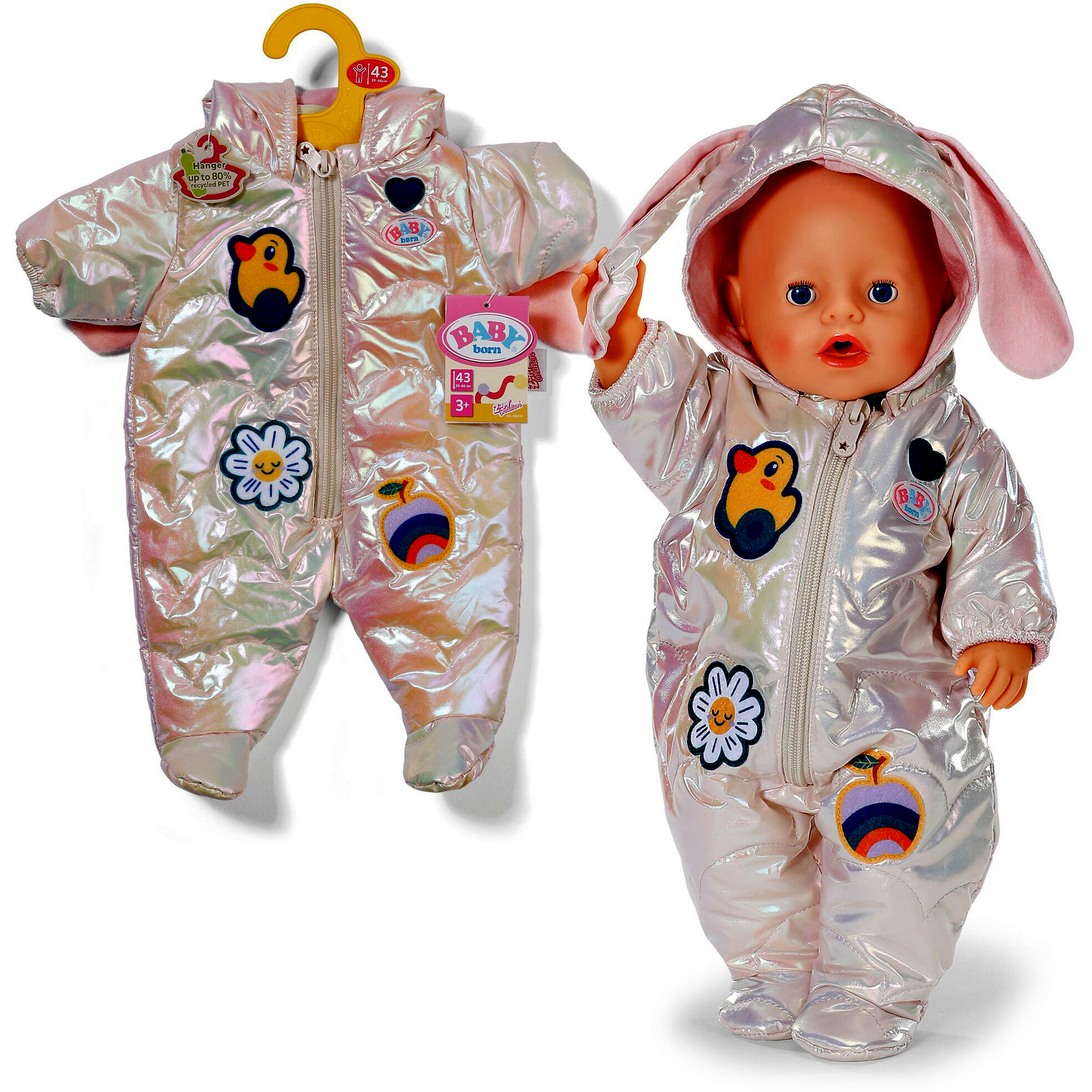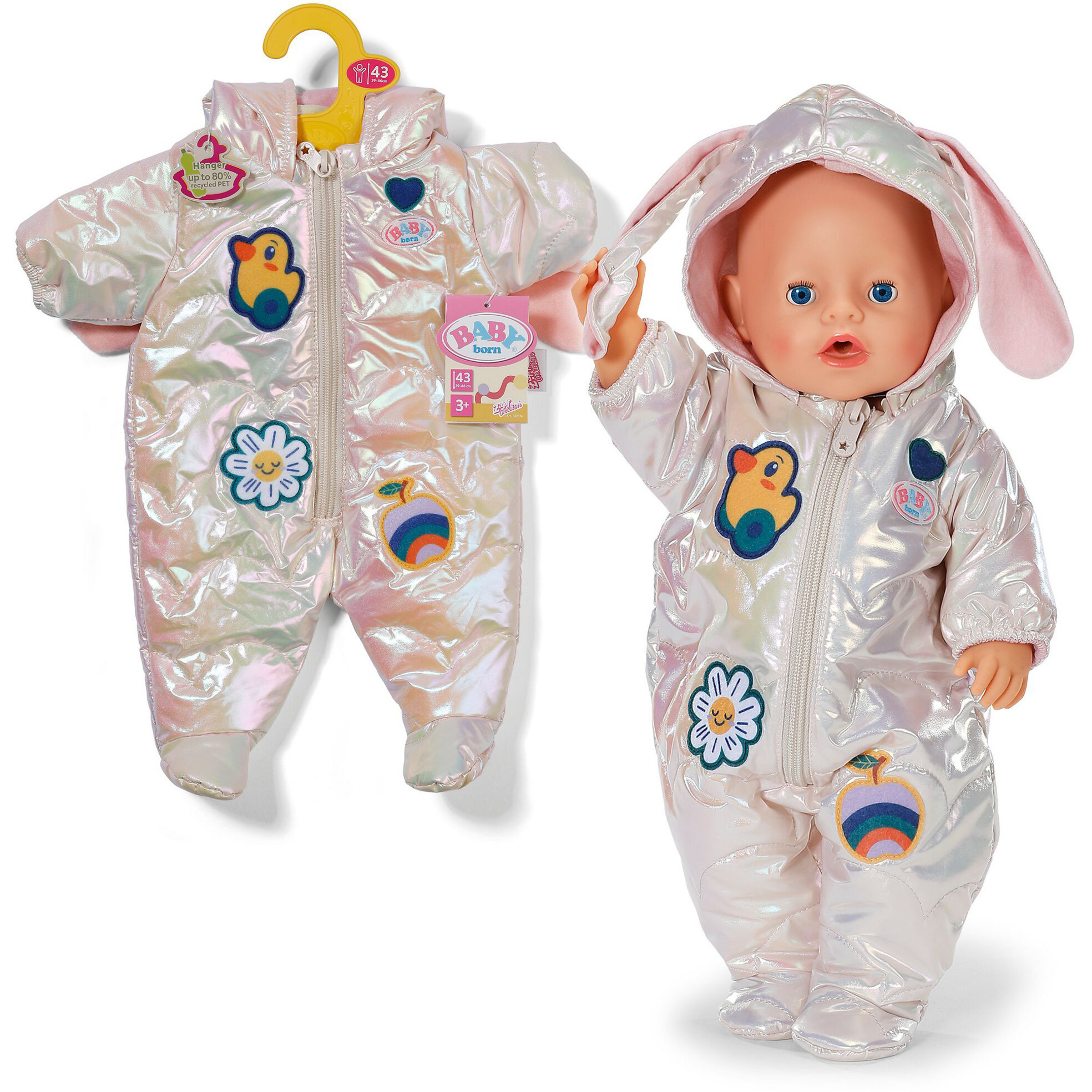 A hóruha minden 43 cm-es BABY born® babához és a BABY born Teddy babához is illeszkedik, így egyetlen ruhadarabbal többféle játékfigura öltöztethető. A semleges, krémszínű dizájn jól kombinálható más BABY born ruhákkal és kiegészítőkkel, így a gyerekek szabadon alakíthatják a saját „téli kollekciójukat”. A finom, de bájos díszítések visszafogott, mégis játékos külsőt kölcsönöznek, ami a kisebb óvodásokat is könnyen elvarázsolja.