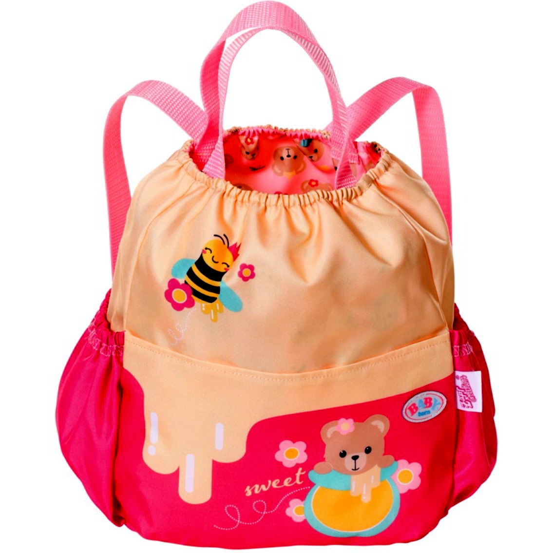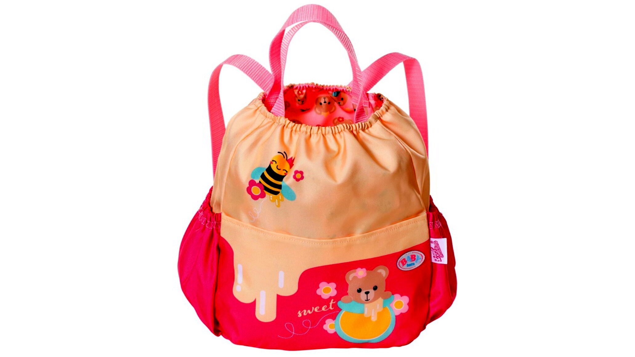 A BABY született medve szuper vállalkozó. Annak érdekében, hogy bárhová jól lehessen vinni, ez a hátizsák a medve felszerelés része. A mézsárga és virágrózsaszín darab úgy lett kialakítva, hogy a BABY born medve az utazás során kilásson a tetejéről.