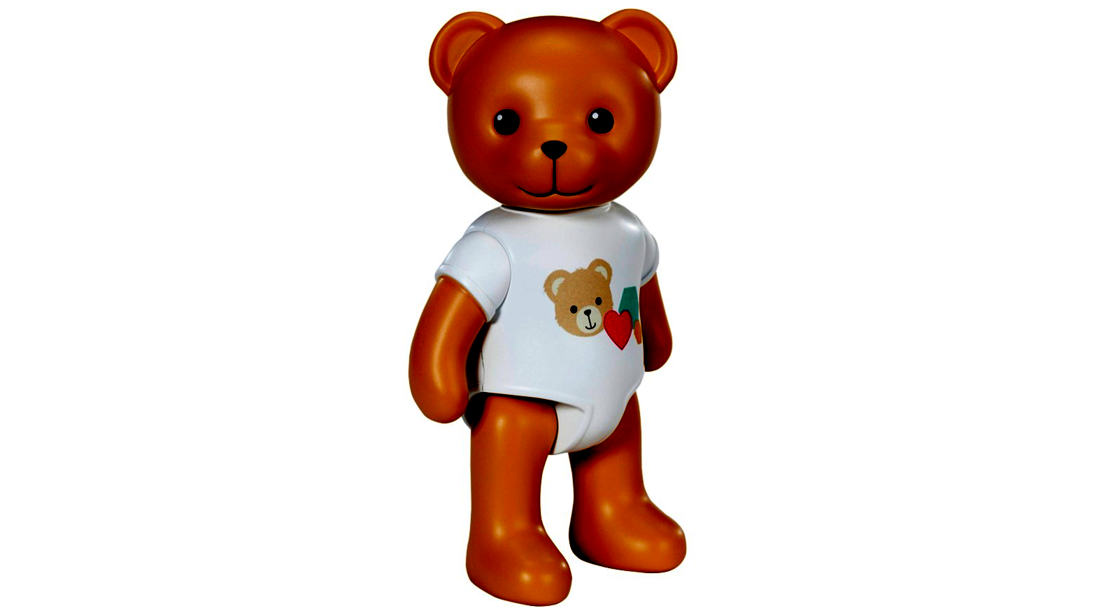 • A karakteres, „személyiséggel” rendelkező figurák – mint ez a mosolygós maci – ösztönzik a beszédfejlődést, hiszen a gyerekek gyakran „beszélgetni” kezdenek velük.