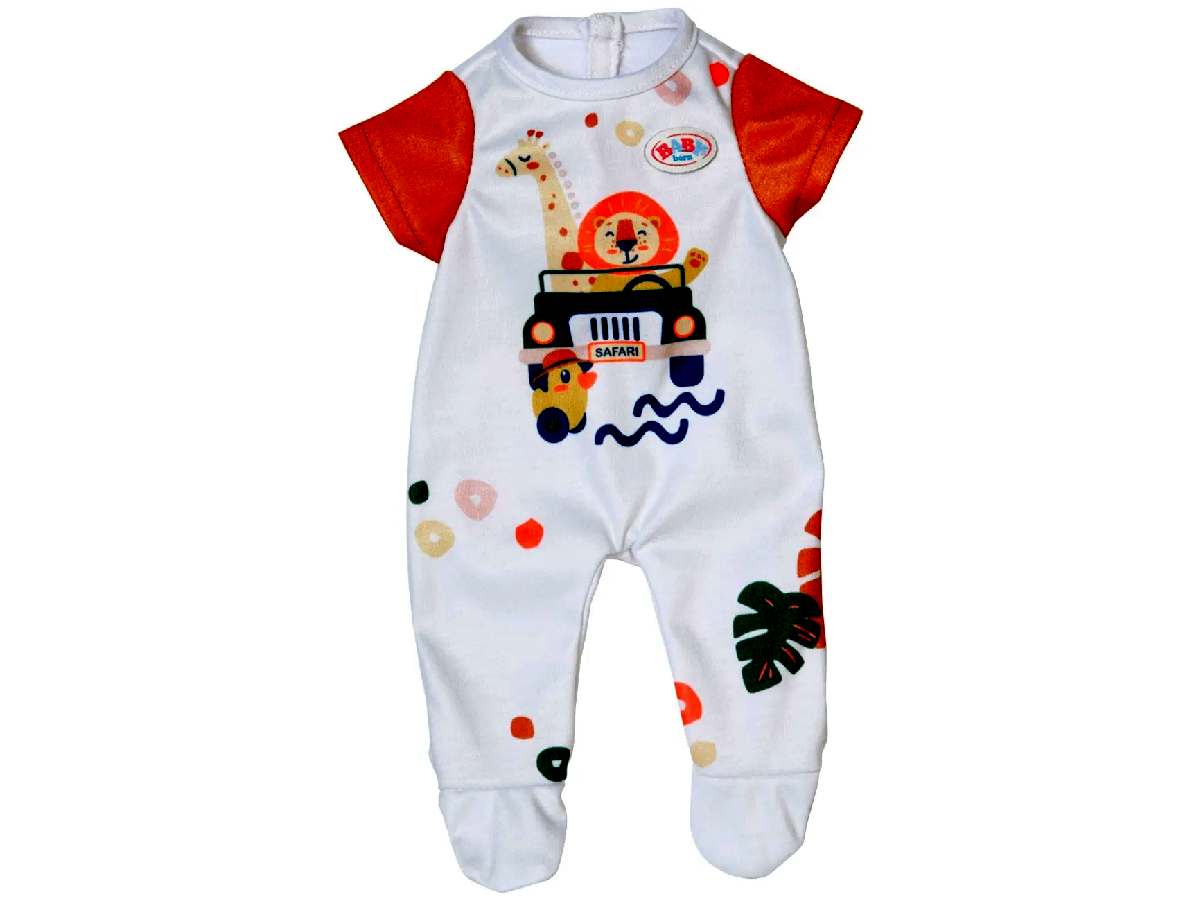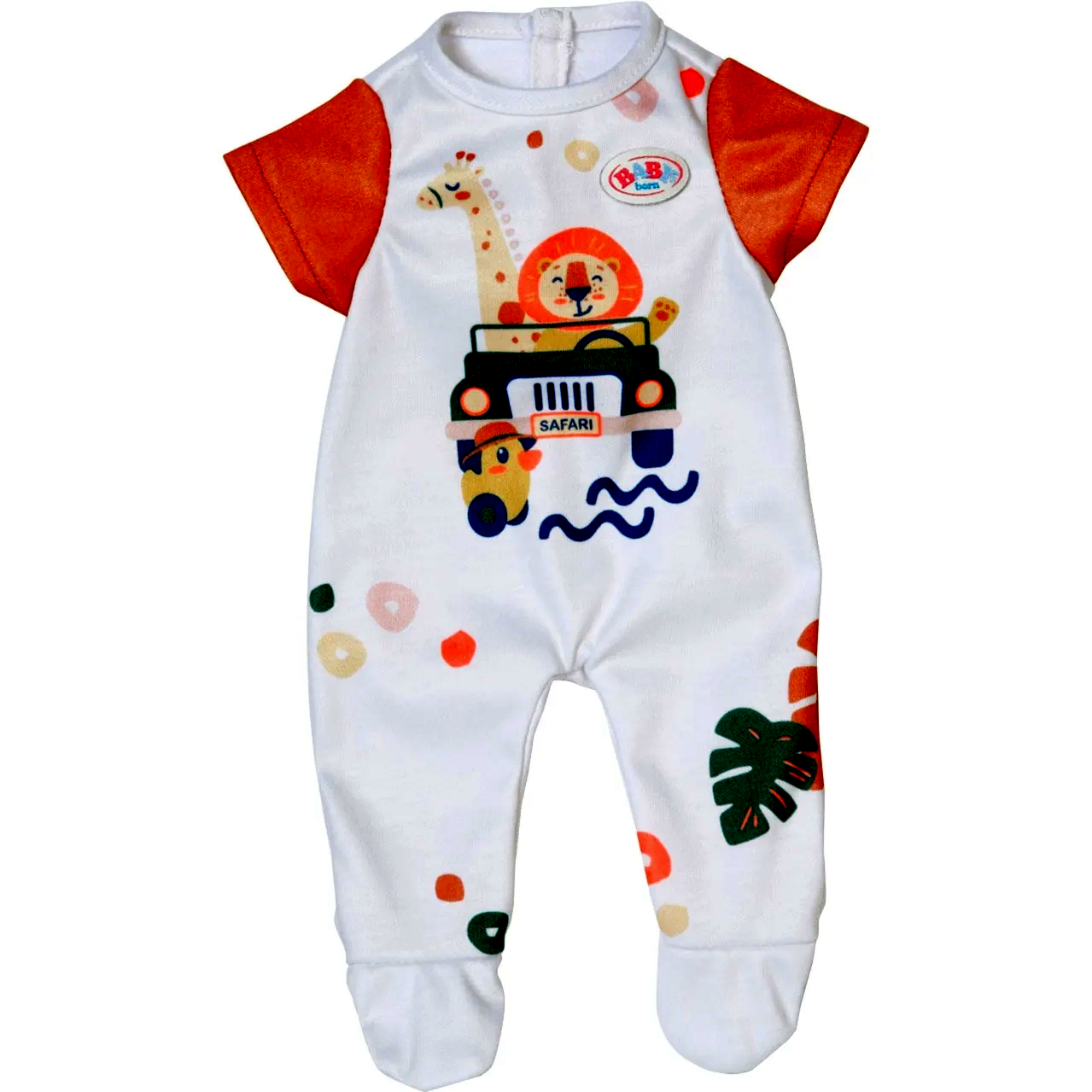 Ez a különleges rugdalózó képes megmutatni BABY born® gyermeked természet iránti szeretetét. Az első oldalán aranyos oroszlán, zsiráf és kacsa motívumok találhatóak, amelyek vidámságot és életkedvet sugároznak. A rövid ujjú ruha színes levélmintákkal díszített, így még inkább kiemeli a baba bájos megjelenését.