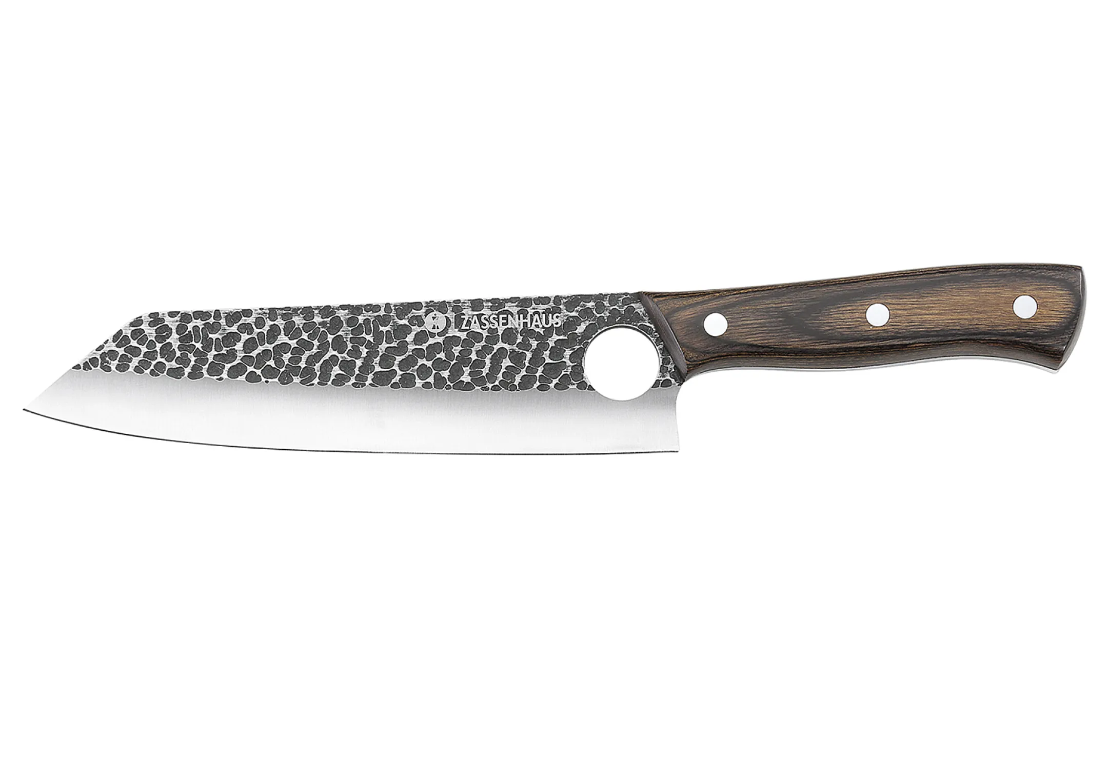 • A pengén kialakított jellegzetes lyuk egyre népszerűbb a modern késeknél: csökkentheti a tapadást bizonyos alapanyagoknál, javíthatja a fogást és segíti a penge pozicionálását vágás közben.