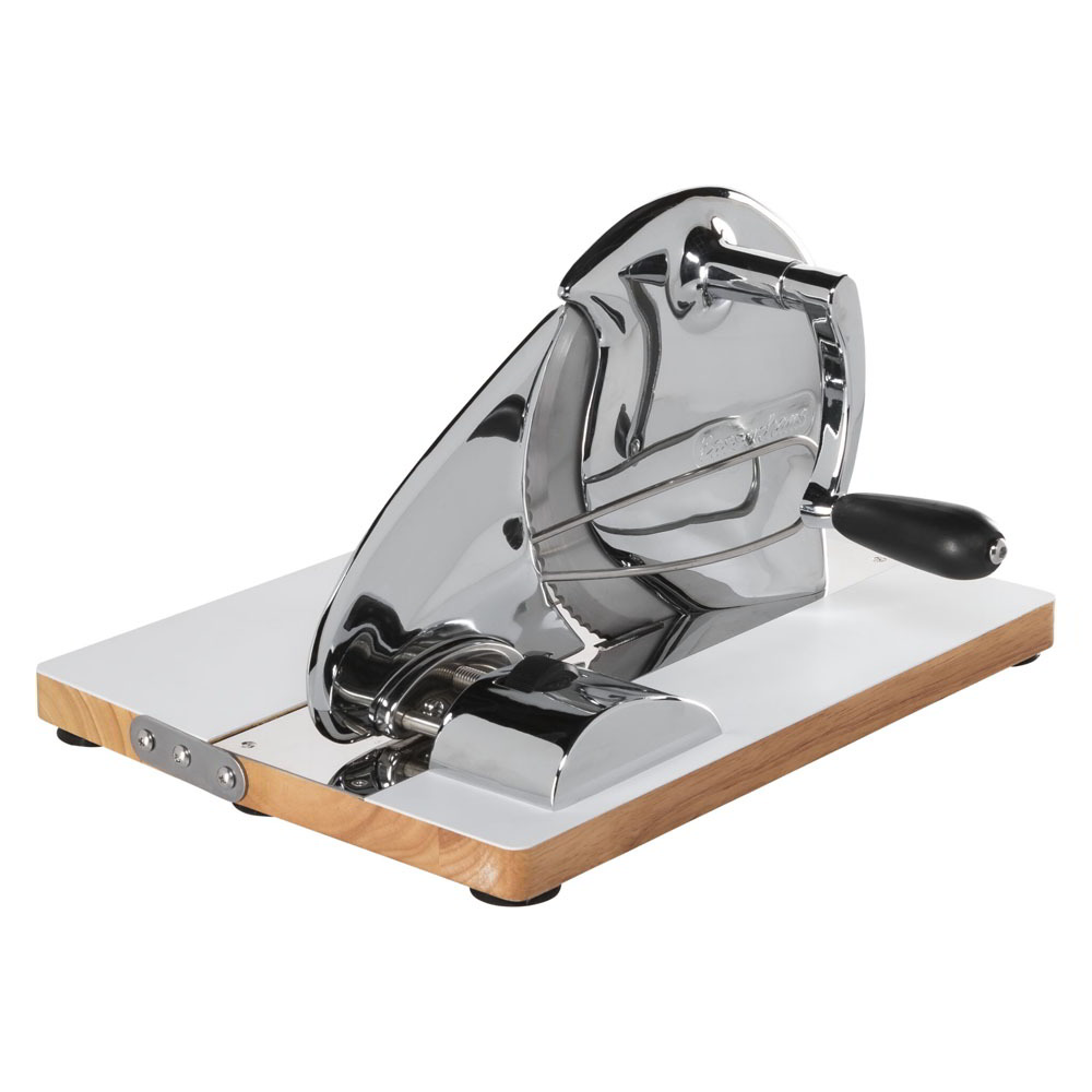 Aki szeletelt kenyeret vásárol, ismeri a problémát: az utolsó szelet gyakran száraz, a szeletek túl vastagok vagy olyan vékonyak, hogy morzsálódnak, amikor megkenjük őket. A Zassenhaus kézi kenyérszeletelője sokkal jobb munkát végez. Az extra éles, fogazott pengével annyi friss szeletet kap, amennyire szüksége van. A skálázással ellátott finombeállításnak köszönhetően a szeletek vastagságát egyénileg a családtagok preferenciáihoz igazíthatja. Ezután forgassa el a sima járású kurblit. A retró kivitelű, kézzel működtetett gép gyorsan, pontosan és fenntarthatóan működik, mivel nem fogyaszt áramot. A tapadókorongos lábak biztonságos állást biztosítanak, az alaplap helytakarékos tárolás érdekében behajtható, a morzsatálca pedig tisztán tartja a munkalapot. Ha már a tisztaságnál tartunk: a gép teljesen fémből készült kialakítása nemcsak jól néz ki, de a takarítást is megkönnyíti.