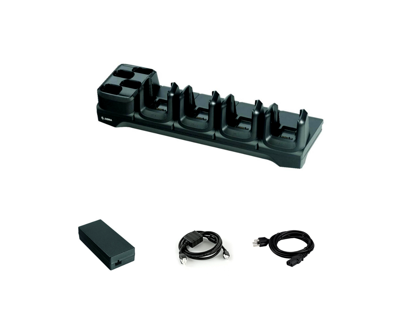 • 4 készülék egyidejű töltése: a dokkoló 4 darab Zebra MC3300x mobil számítógépet képes párhuzamosan tölteni, így csökkenti az állásidőt és egyszerűsíti a műszakváltást.